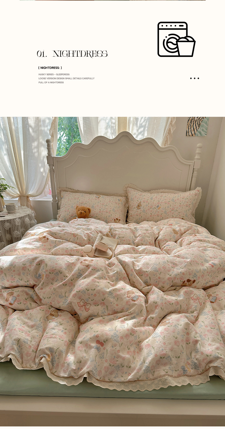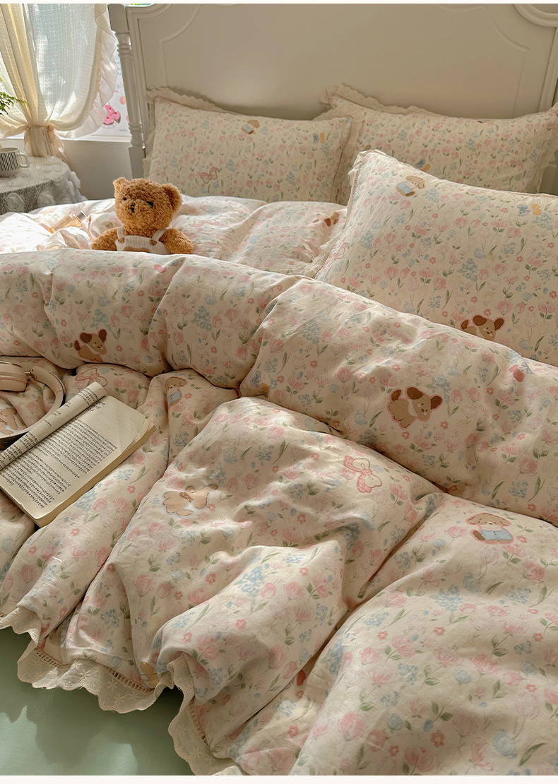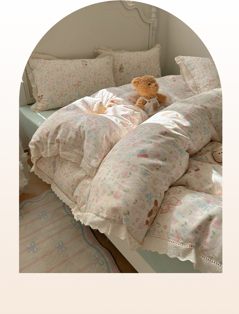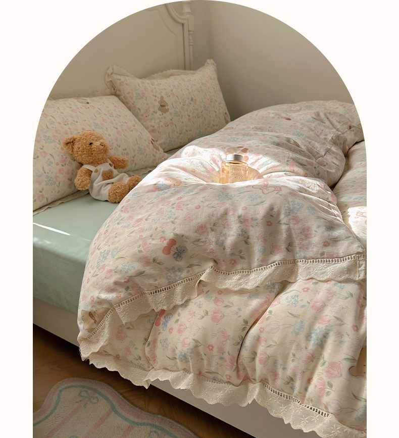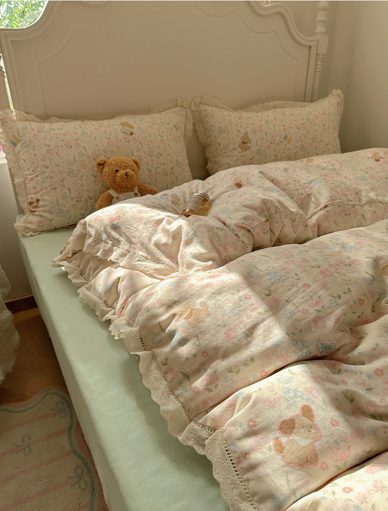 当前位置: 91家纺网 > 商品网购 > 床品套件 > 四件套 > 全棉普通四件套 > 瑞莱 2025新款全棉纯棉A类有氧双层纱镂空花边四件套 镂空-花园小狗