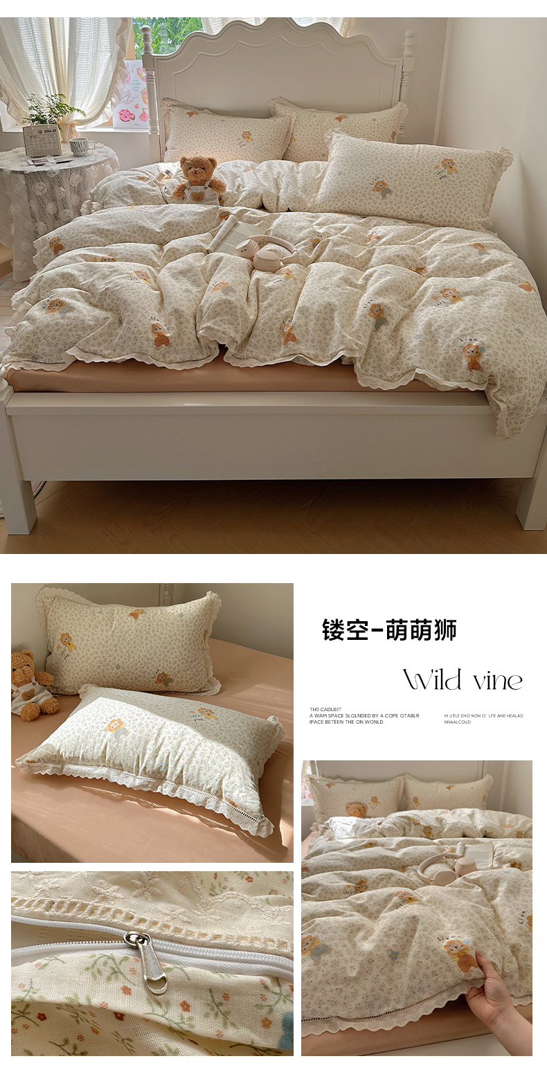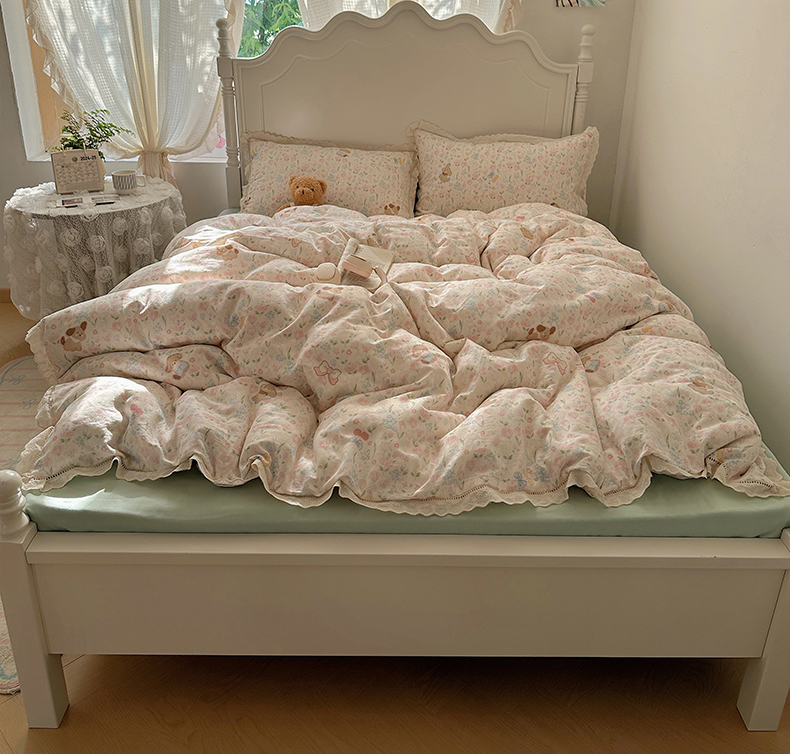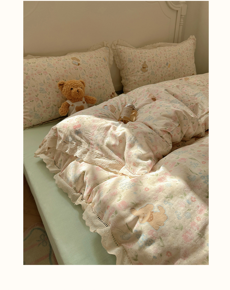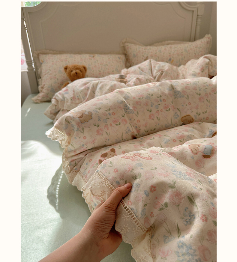 当前位置: 91家纺网 > 商品网购 > 床品套件 > 四件套 > 全棉普通四件套 > 瑞莱 2025新款全棉纯棉A类有氧双层纱镂空花边四件套 镂空-花园小狗