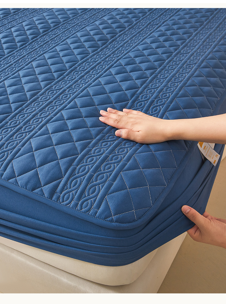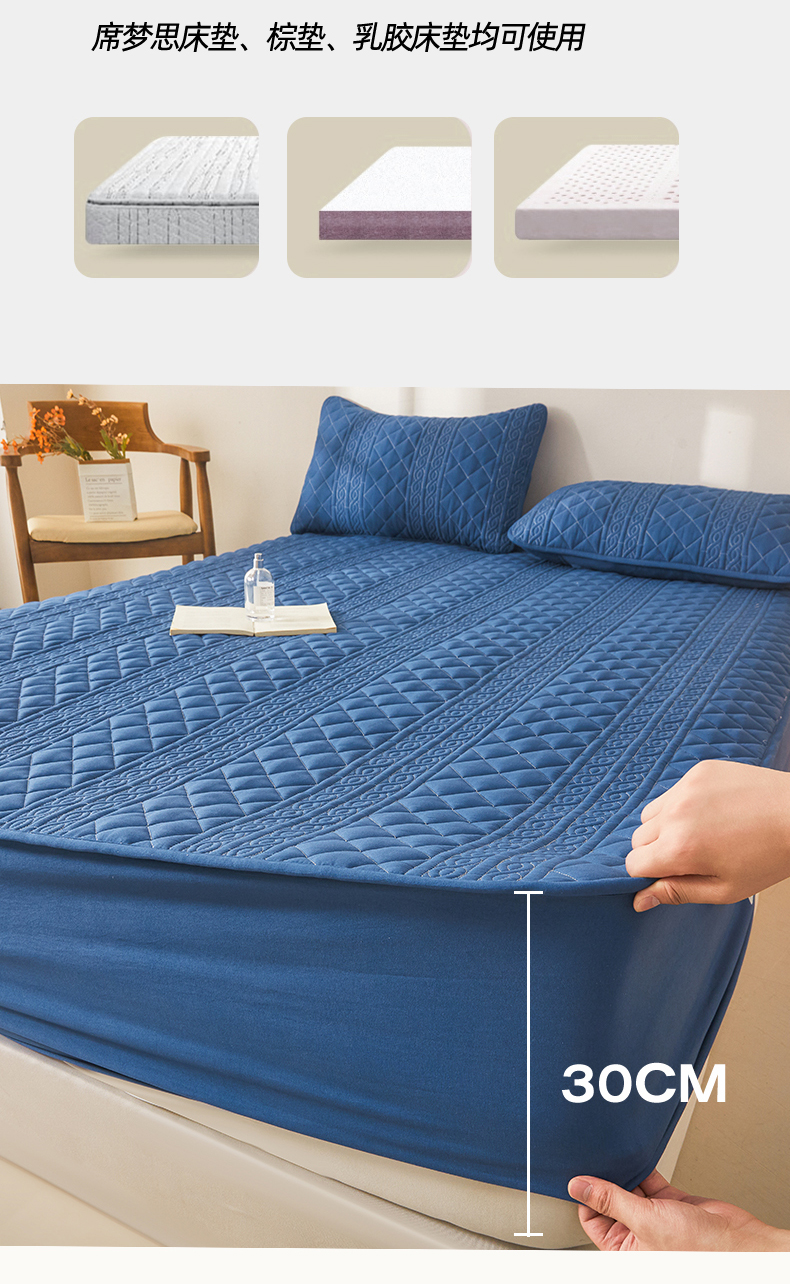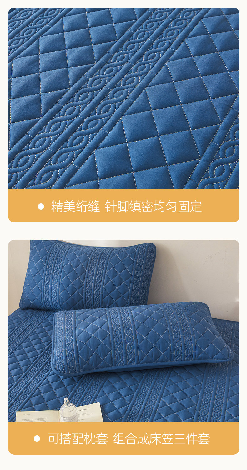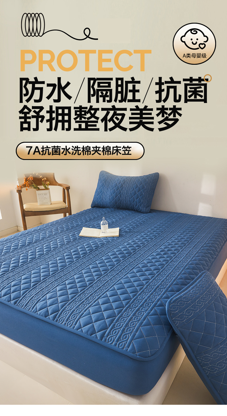 • 91家纺网 家纺一手货源 找家纺 雯豆家纺 2025新款梵可A类夹棉防水床笠三件套水洗棉磨毛床单保护套 梵可-黛蓝