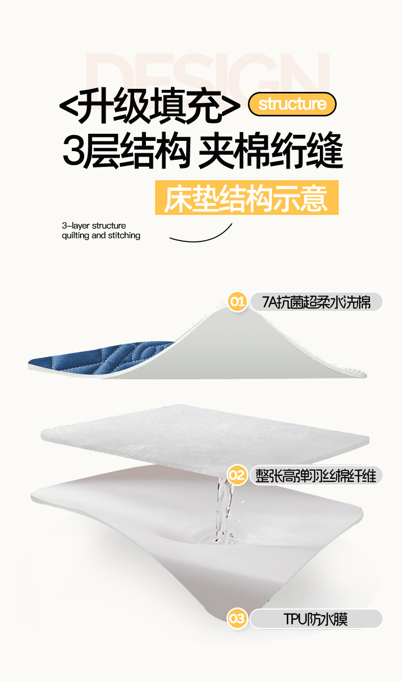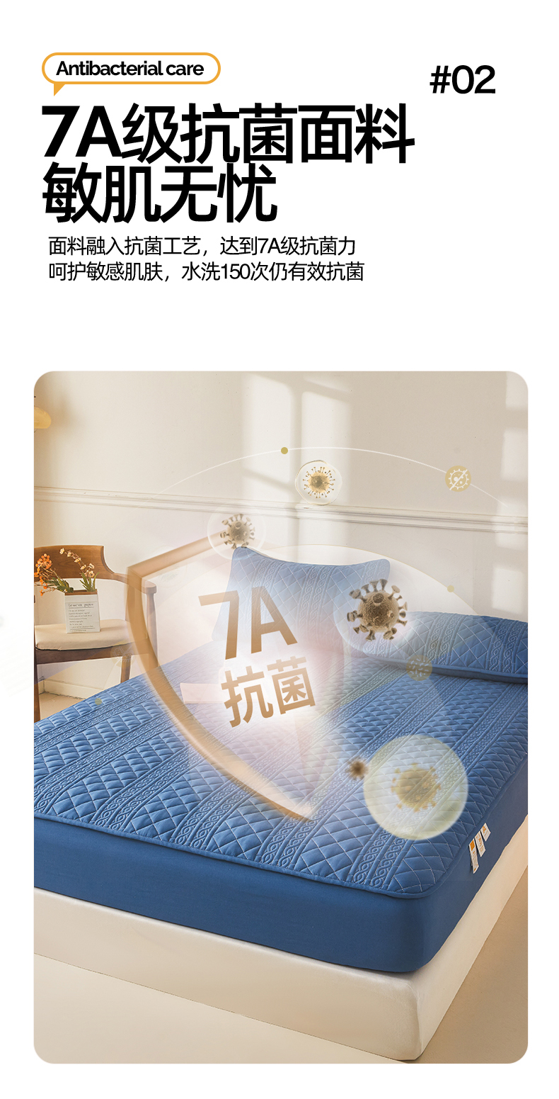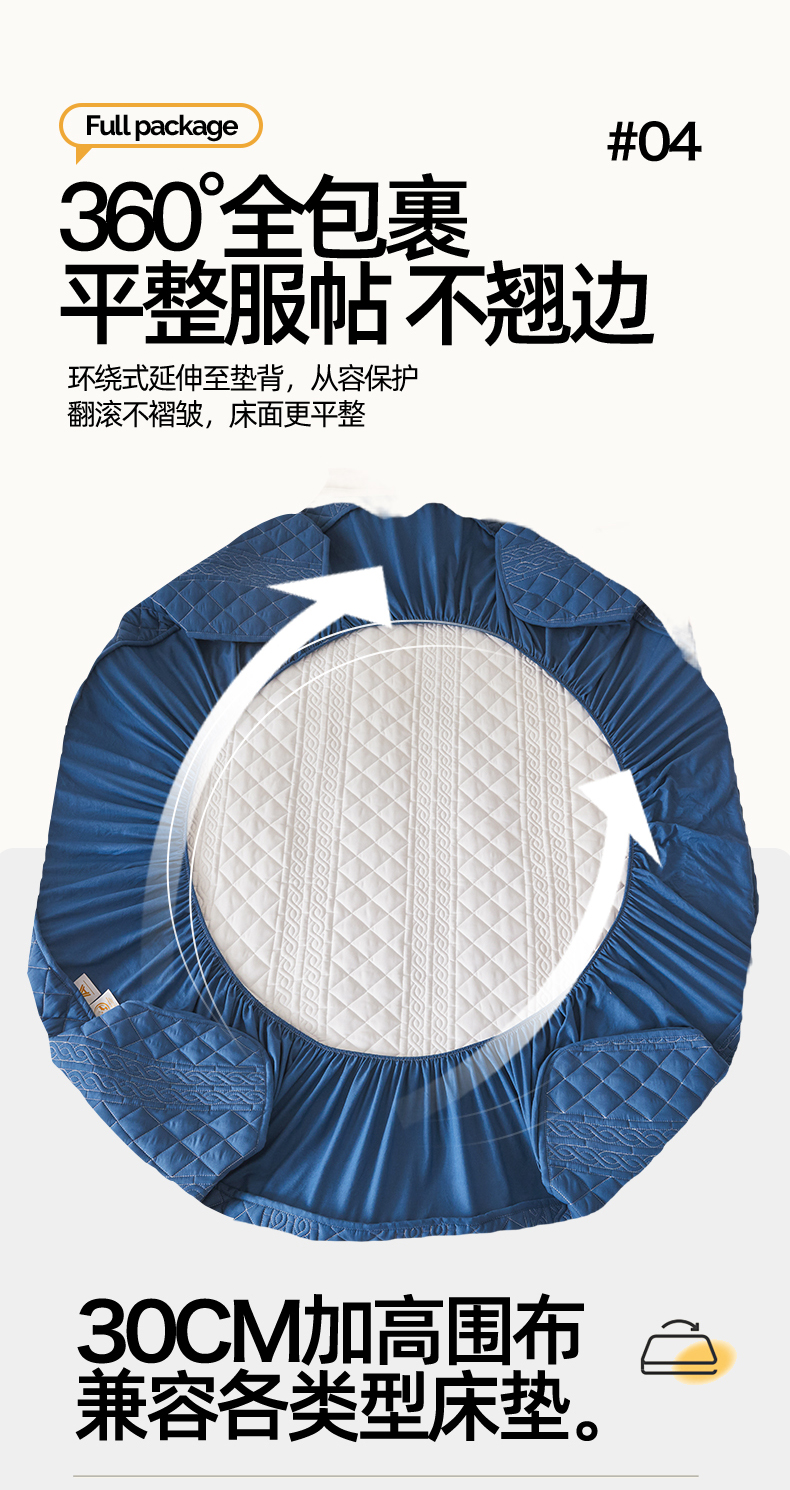 • 91家纺网 家纺一手货源 找家纺 雯豆家纺 2025新款梵可A类夹棉防水床笠三件套水洗棉磨毛床单保护套 梵可-黛蓝