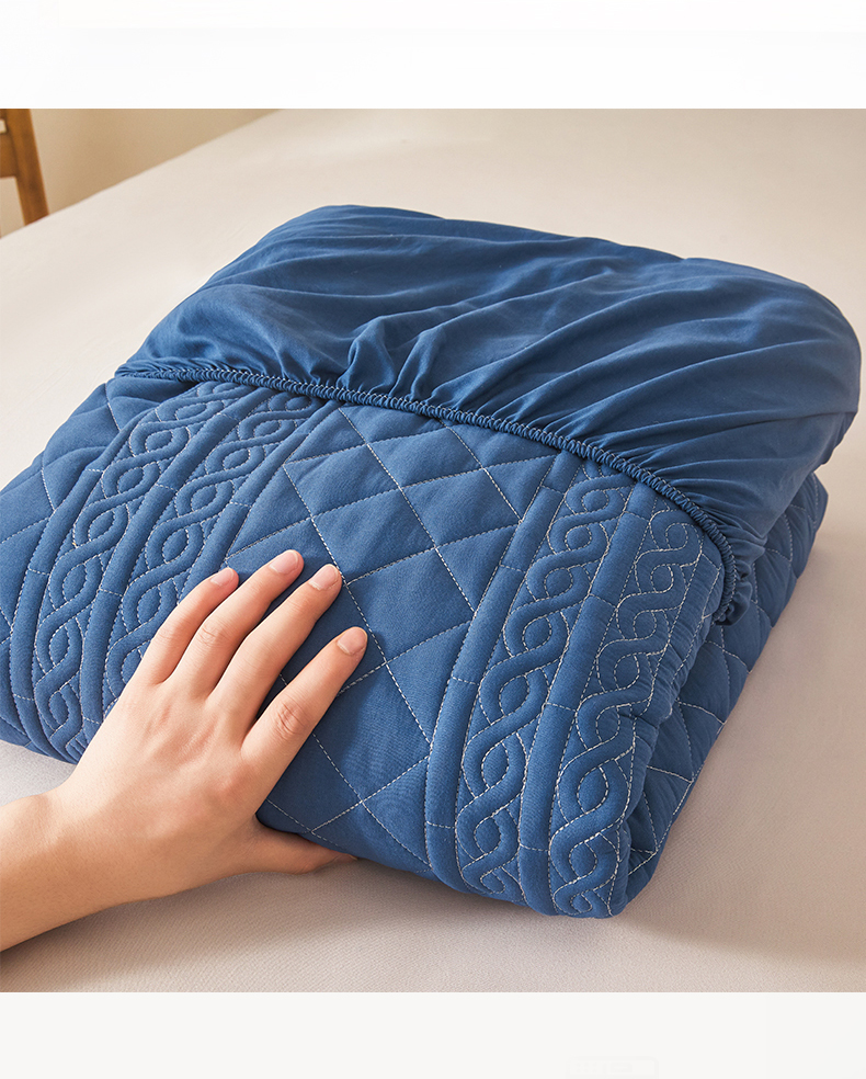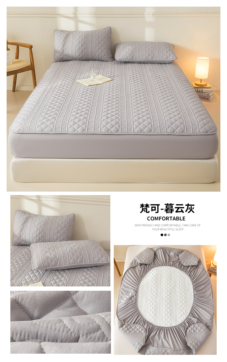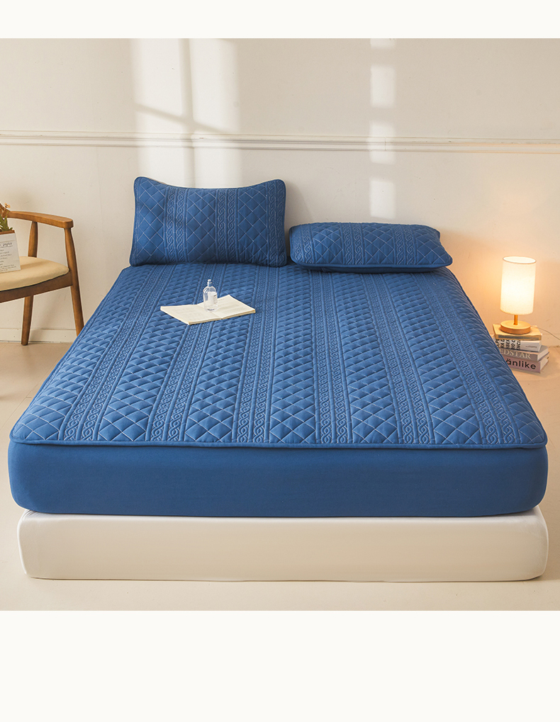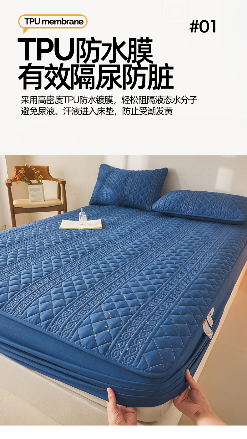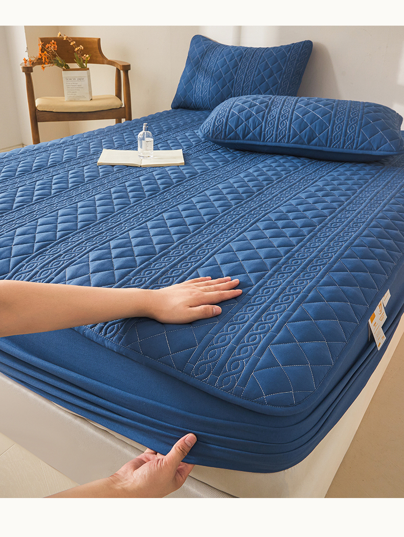 雯豆家纺 2025新款梵可A类夹棉防水床笠三件套水洗棉磨毛床单保护套 梵可-黛蓝