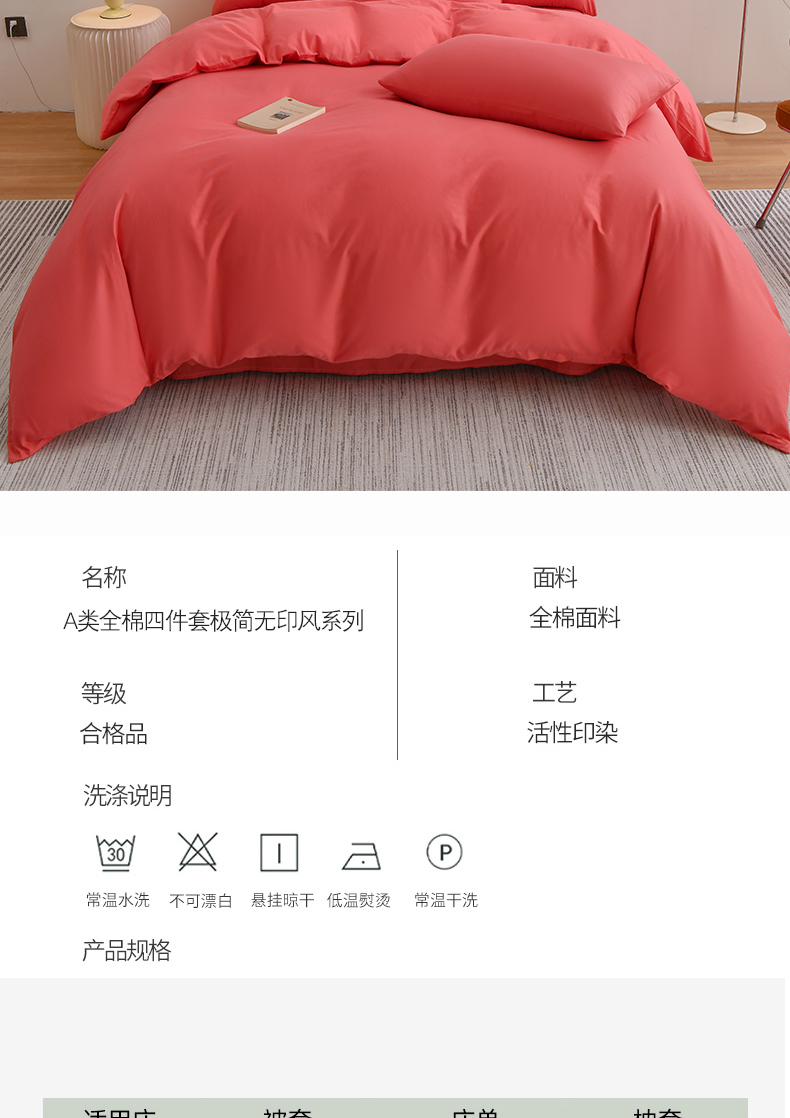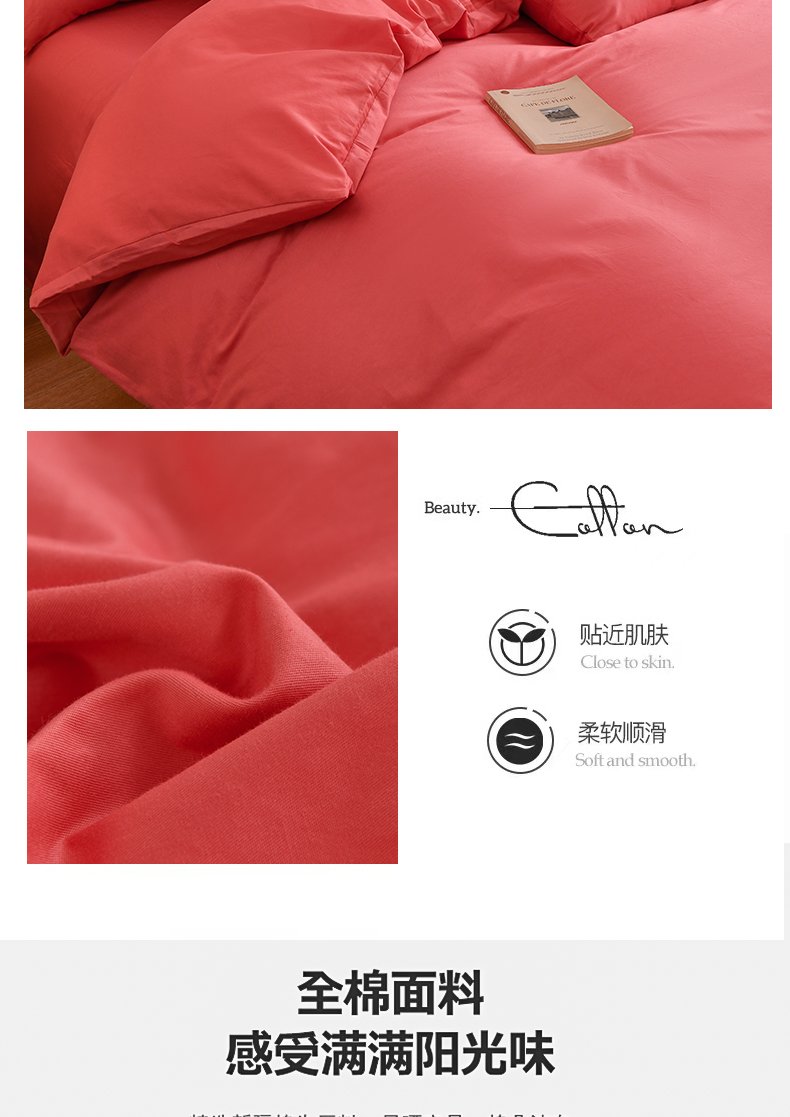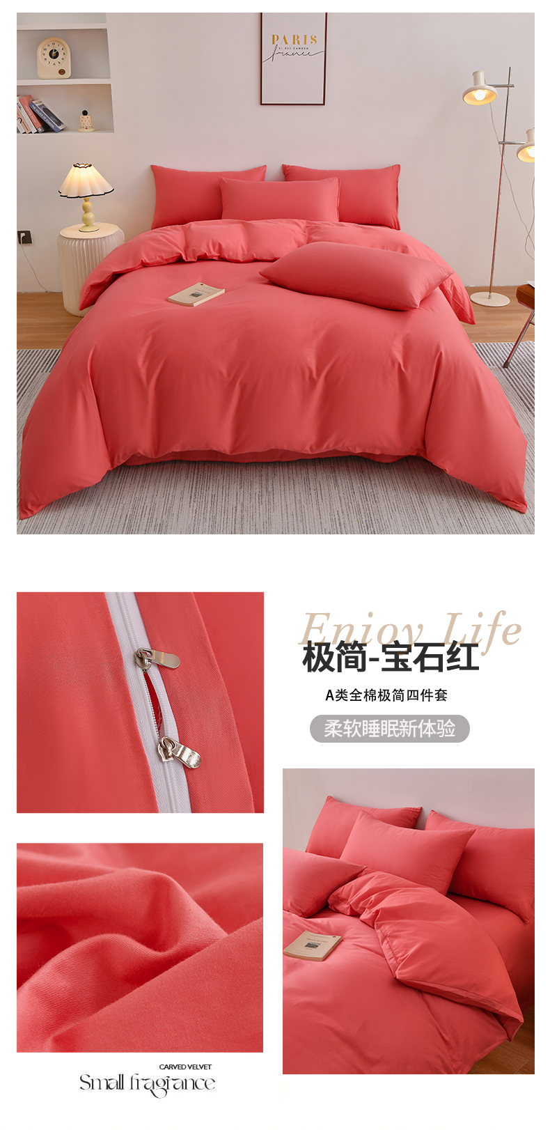 商品名称:宇彬家纺 2025新款13374全棉纯棉母婴级简约轻奢小清新纯色单被套 极简-宝石红