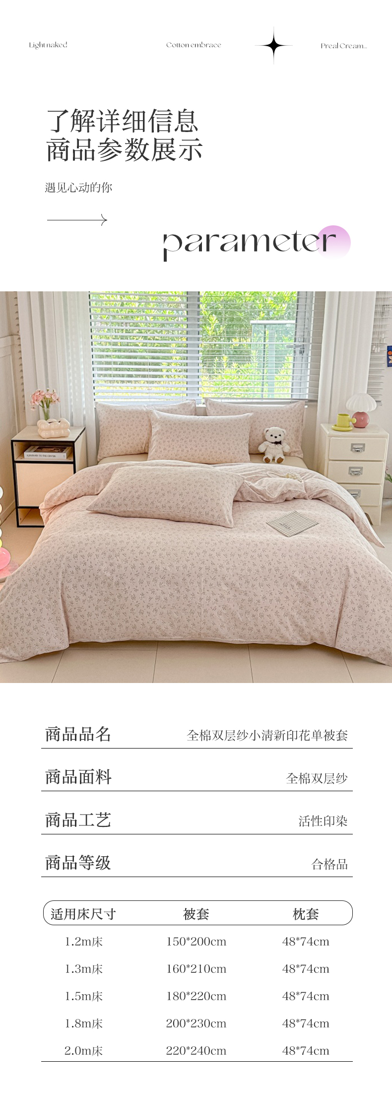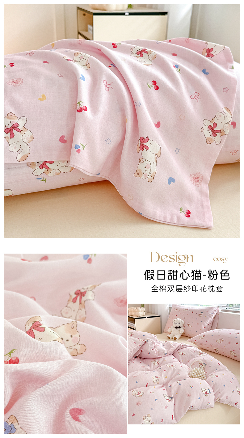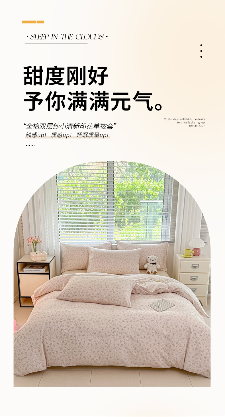 (总)芙绣家纺 2025新款A类全棉双层纱小清新印花单被套学生单被套单枕套,春风里,繁花似锦,花间絮语,假日甜心猫-粉色,假日甜心猫-米白,漫天心,蔷薇梦境,十里桃花,甜心格格,组合图仅供参考