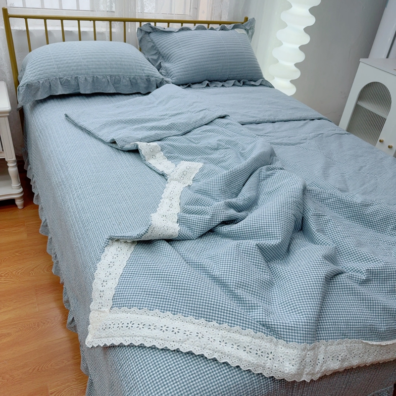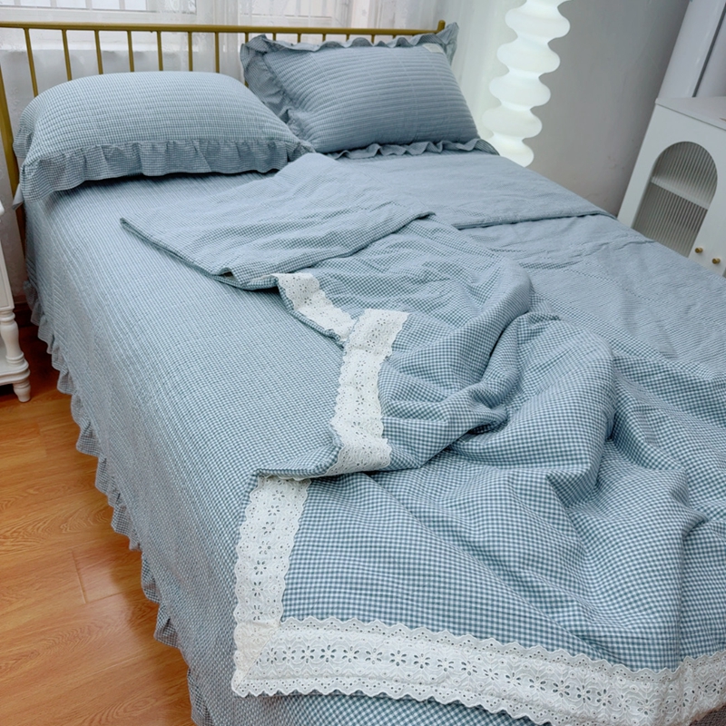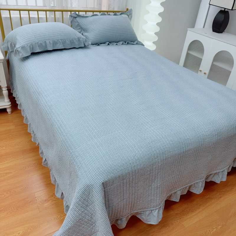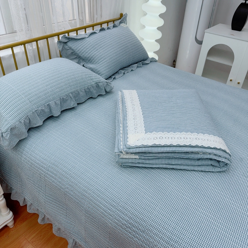暖居 2025新款全棉水洗棉床盖三件套可配同款被套同款多功能夏被四季通用 蓝小格
