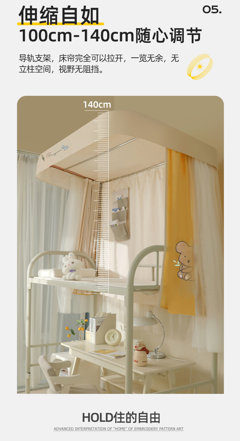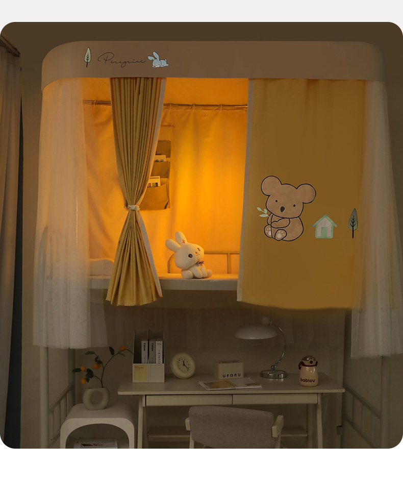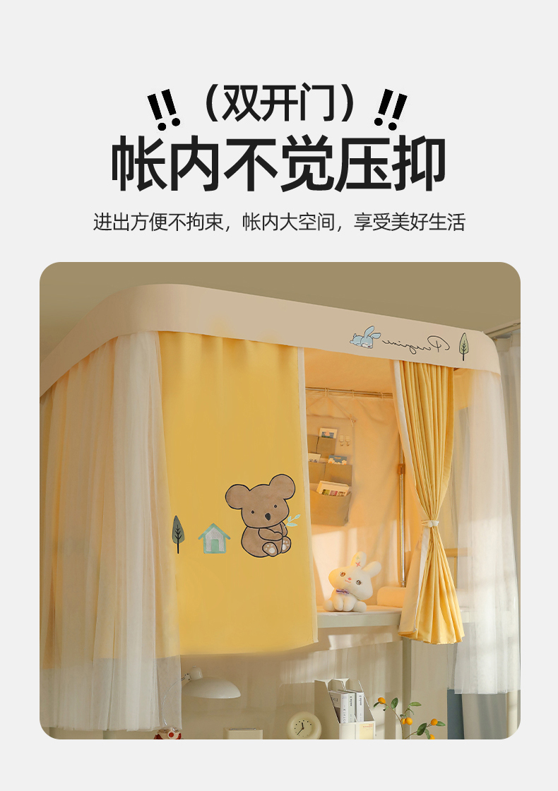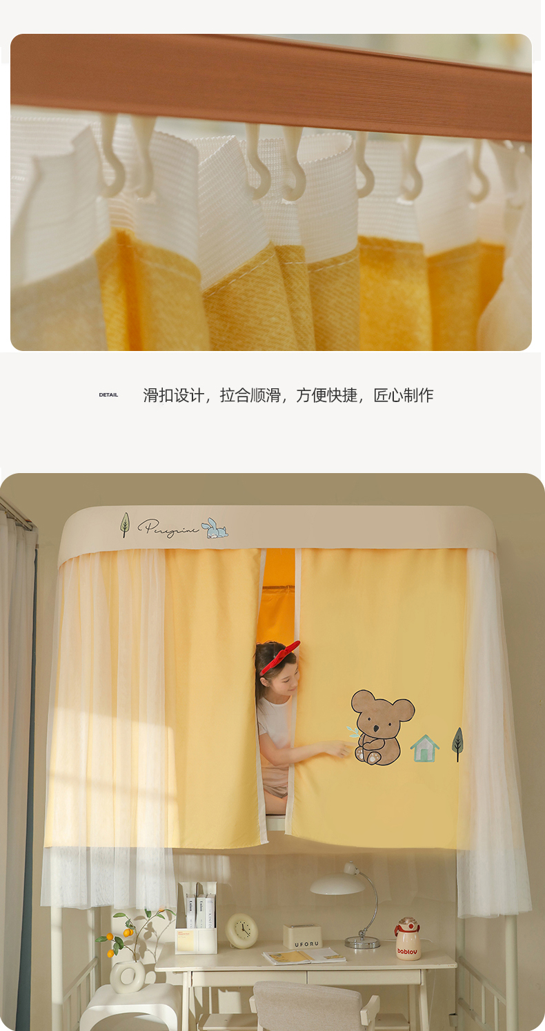 商品名称:都市缘蚊帐 2025新款学生宿舍导轨遮光床帘上下铺贴布卡通蚊帐0.8m 0.9m床 考拉-黄