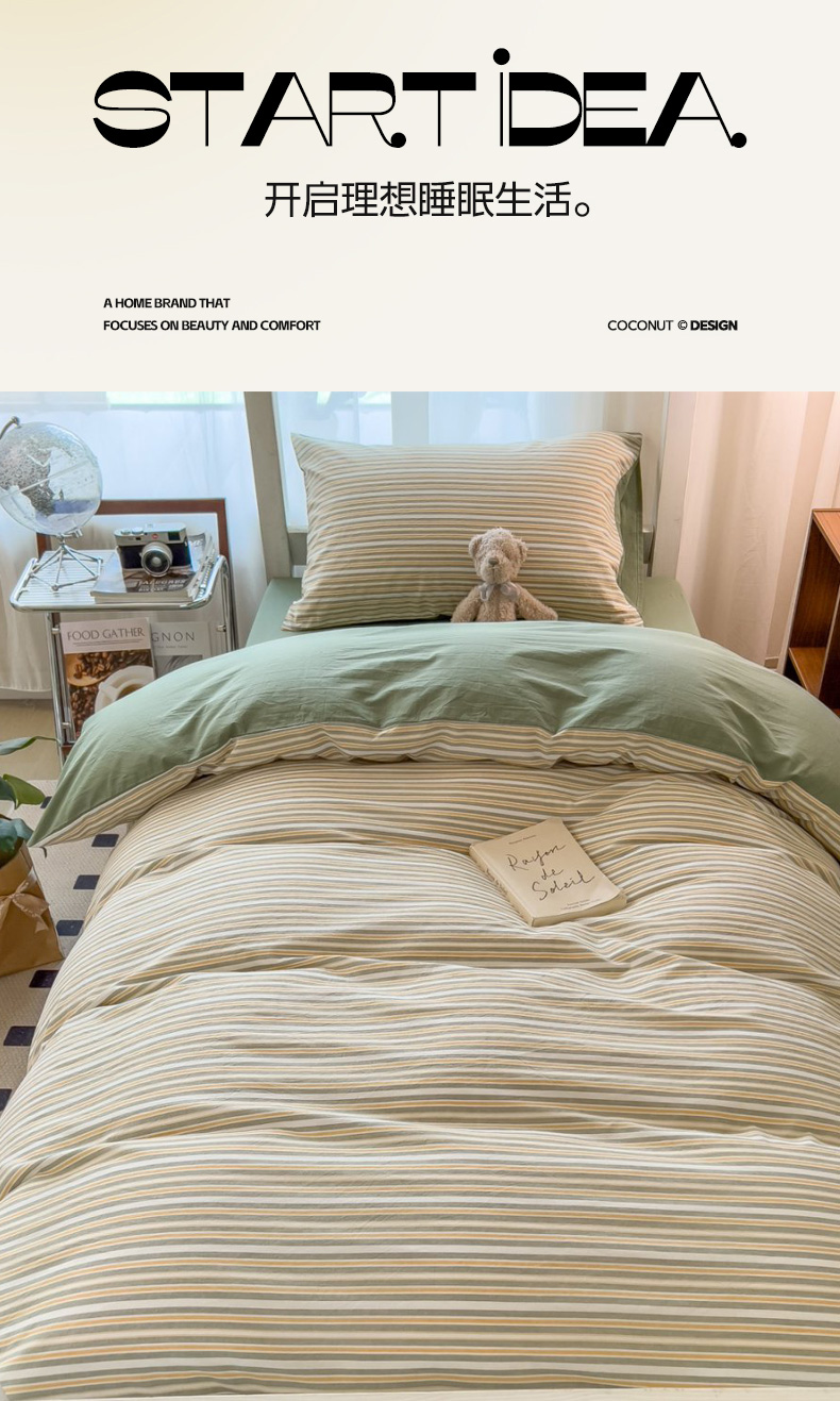 商品名称:宝士康家纺 2025春夏新款简约水洗棉学生三件套宿舍三件套上下铺三件套套件学生六件套套件(床单款) 小绿条
