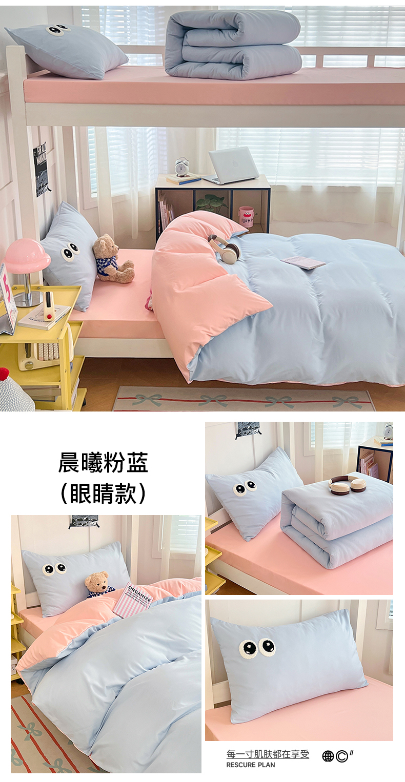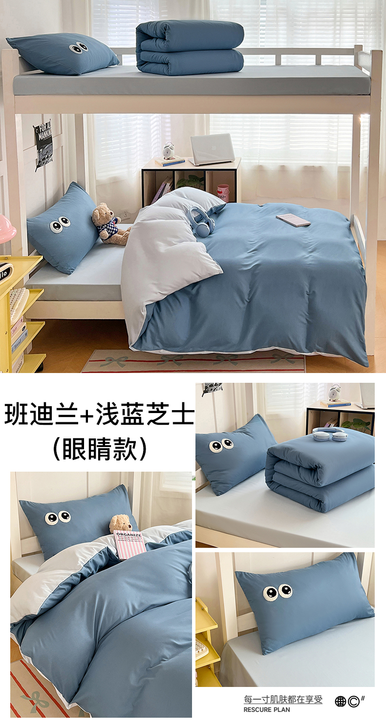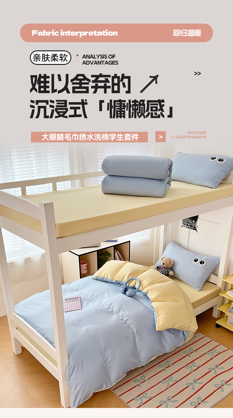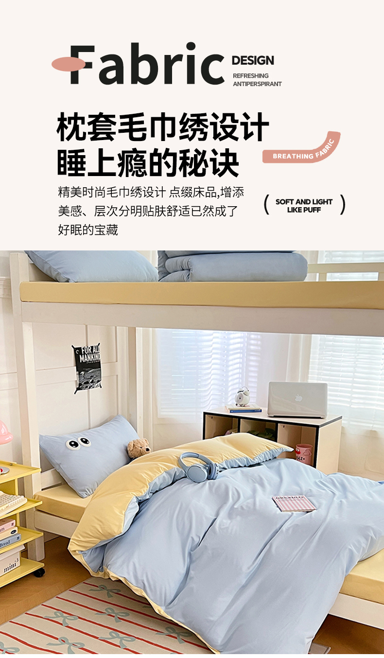 (总)2025新款大眼睛毛巾绣纯色双拼水洗棉大学生宿舍三件套四件套四季通用宿舍用品