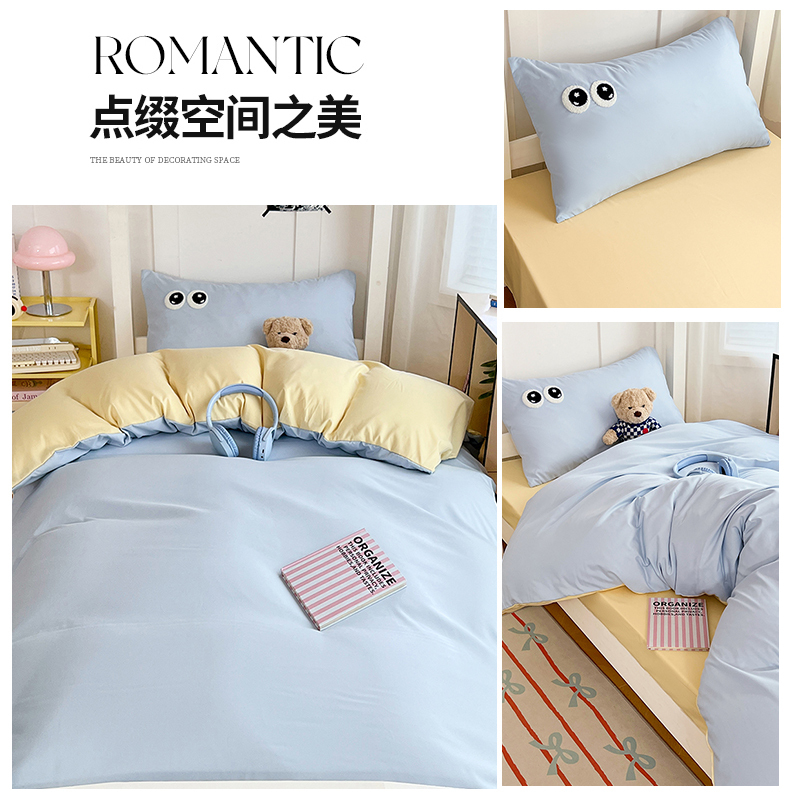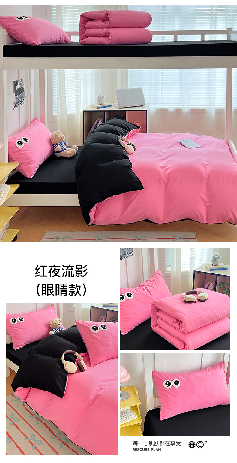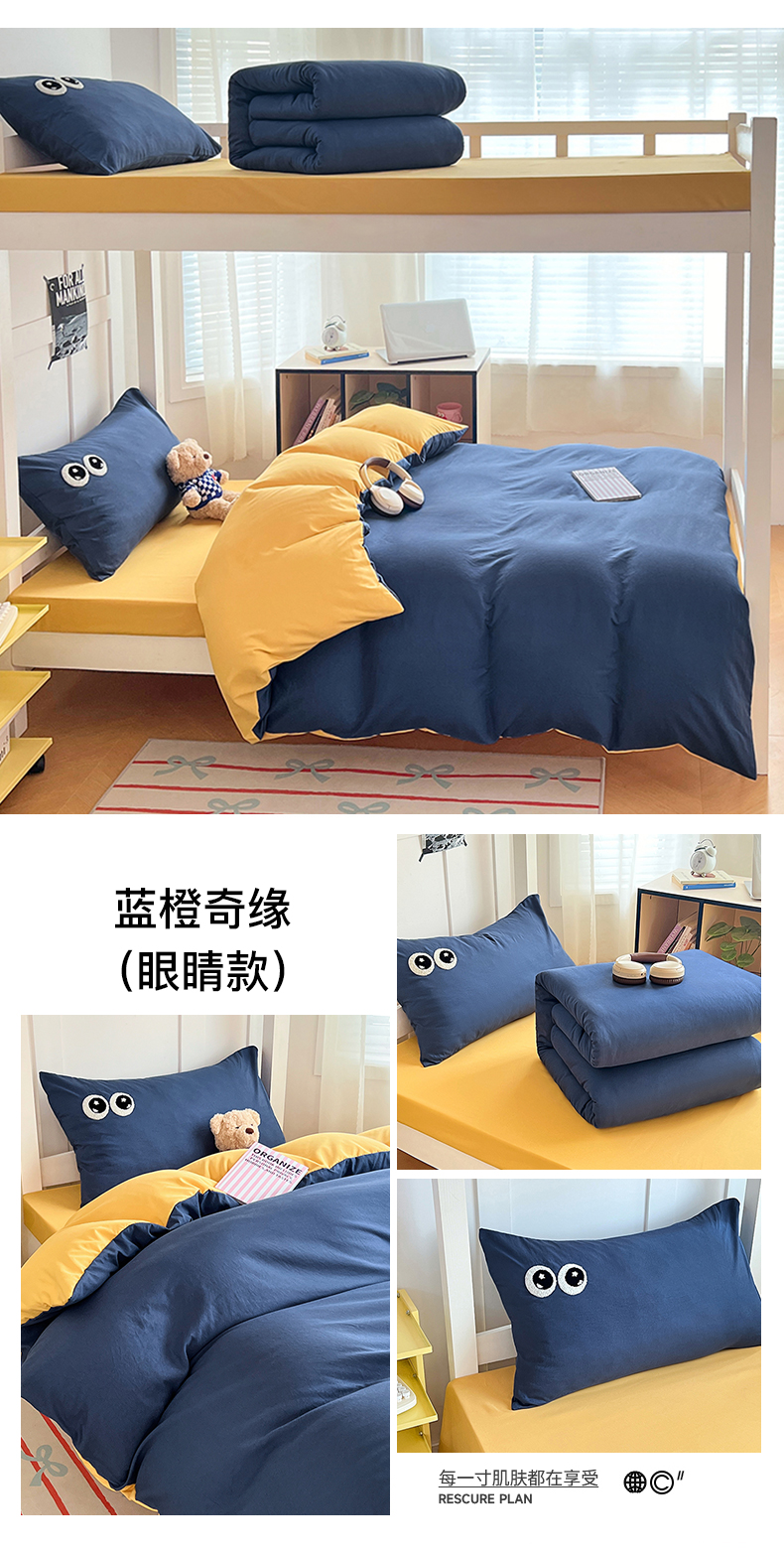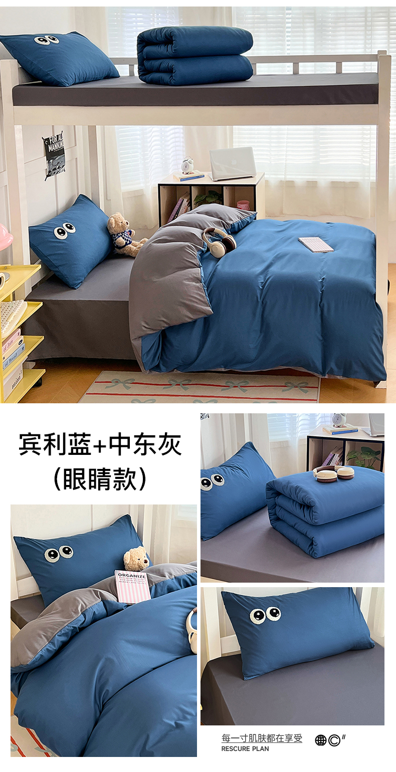 (总)2025新款大眼睛毛巾绣纯色双拼水洗棉大学生宿舍三件套四件套四季通用宿舍用品