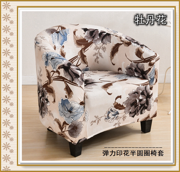 (总)壹零特色家纺 弹力单人印花卡座沙发套 咖啡厅全包沙发罩 防尘半圆圈椅套