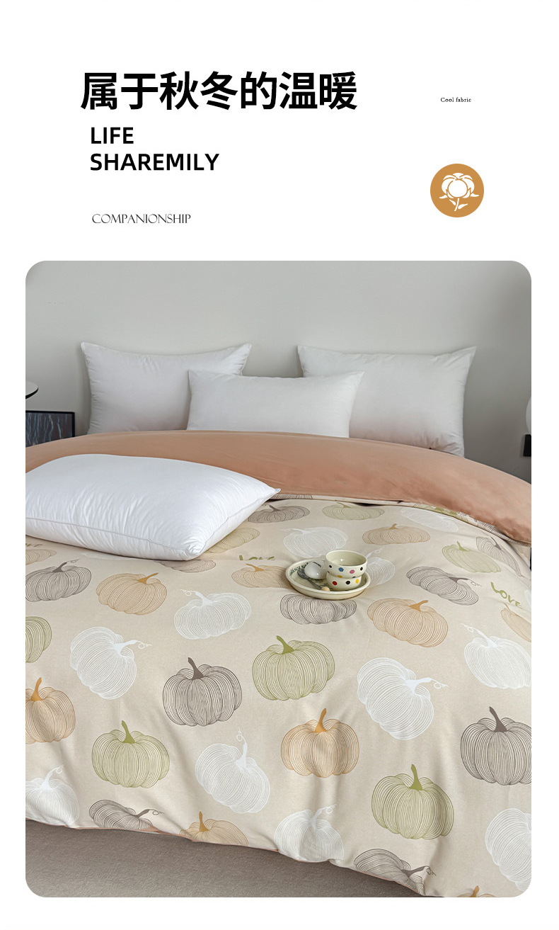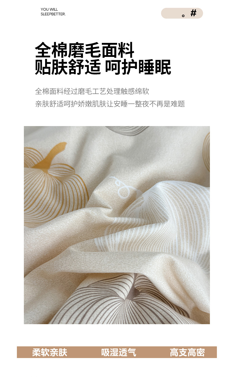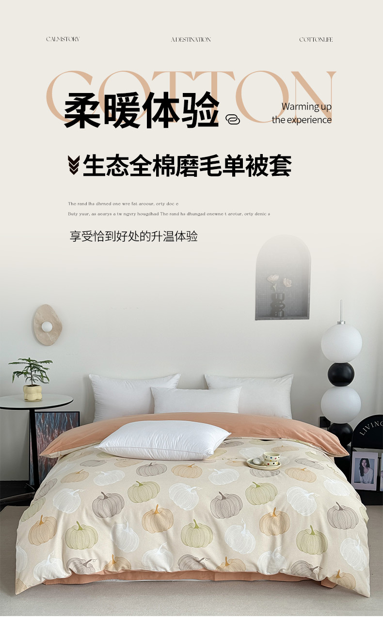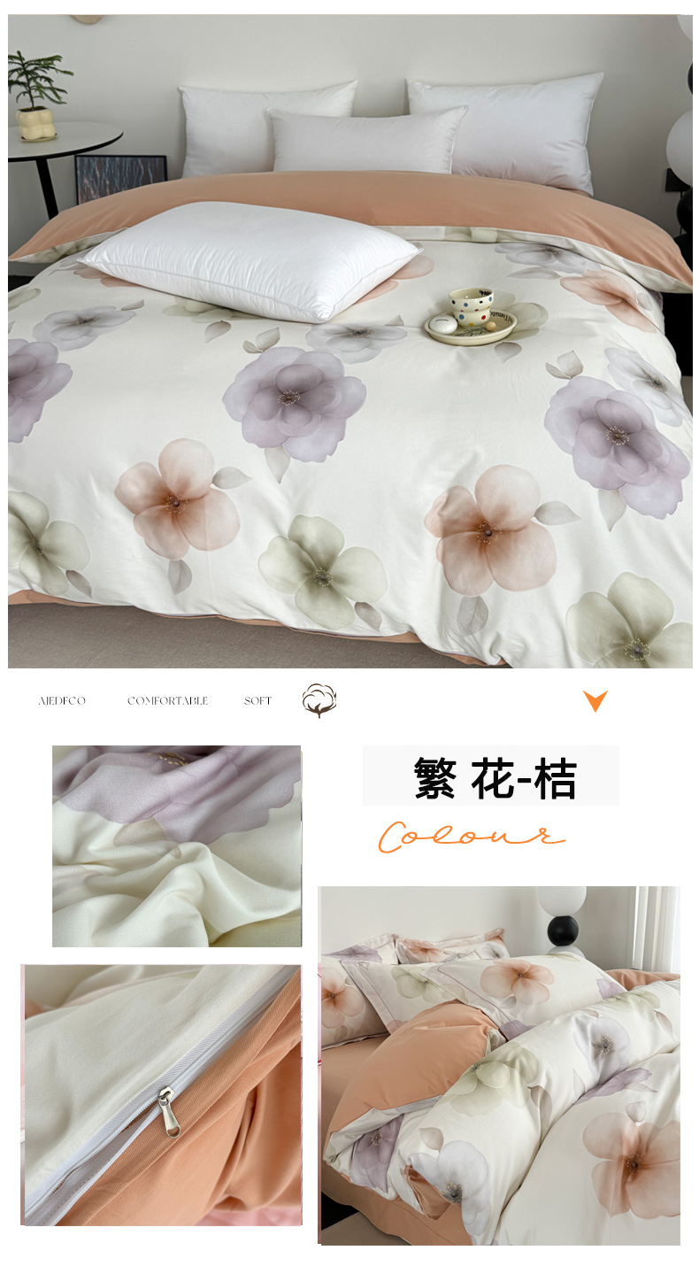 • 91家纺网 家纺一手货源 找家纺 艾迪尚家纺 2025新款生态全棉纯棉磨毛印花单品系列-单被套被套单件 如意-桔