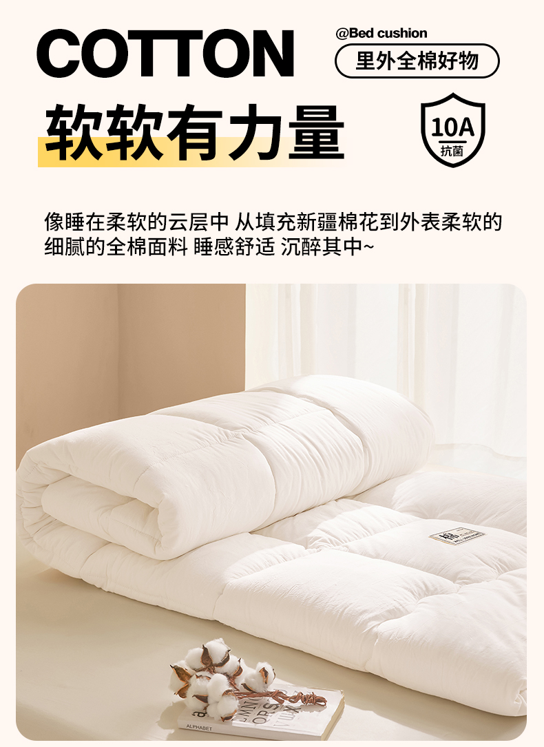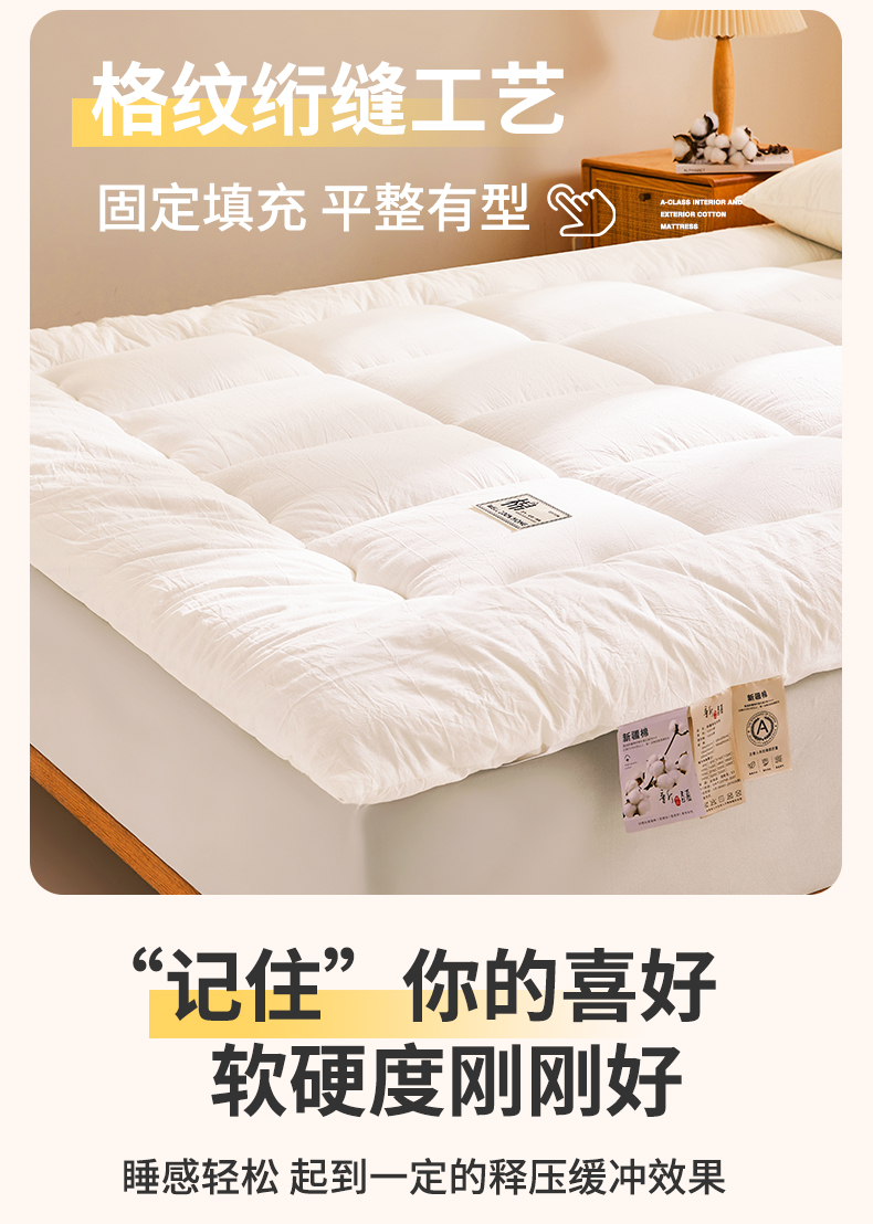 当前位置: 91家纺网 > 商品网购 > 床垫/床褥 > 普通床垫 > (总)西域种棉人·千百笠 2025新款A类抗菌里外全棉100%新疆棉花褥子床垫垫被软垫家用棉花被褥铺底