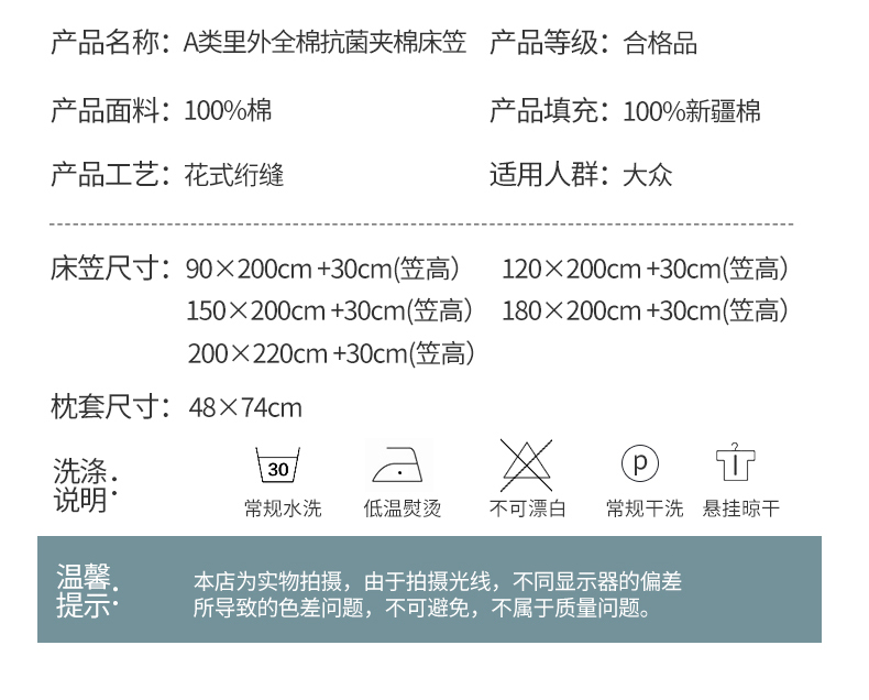 90*200+30cm 单床笠 | ¥34.00 |