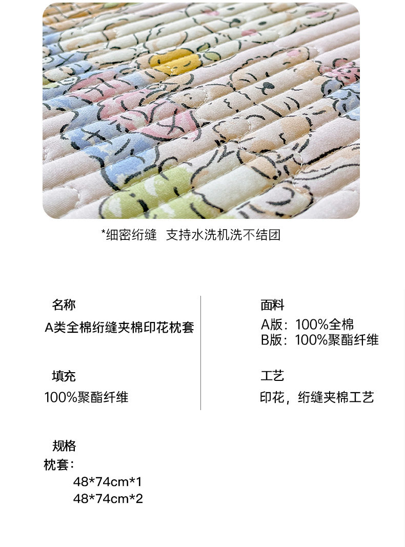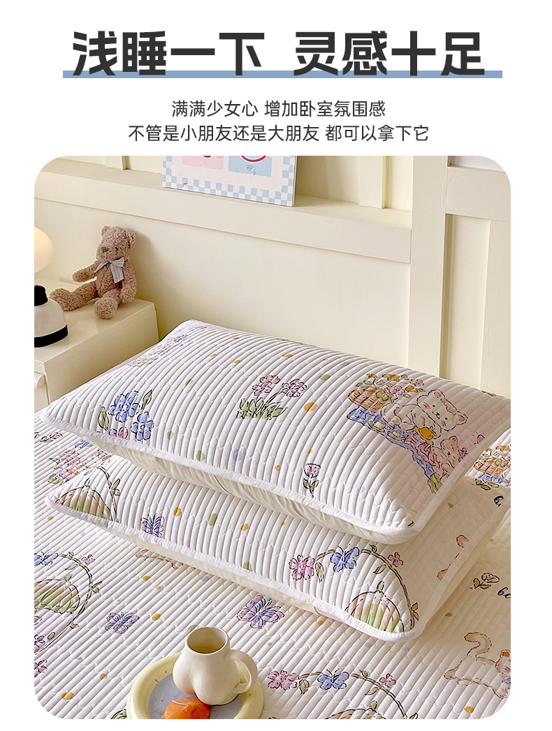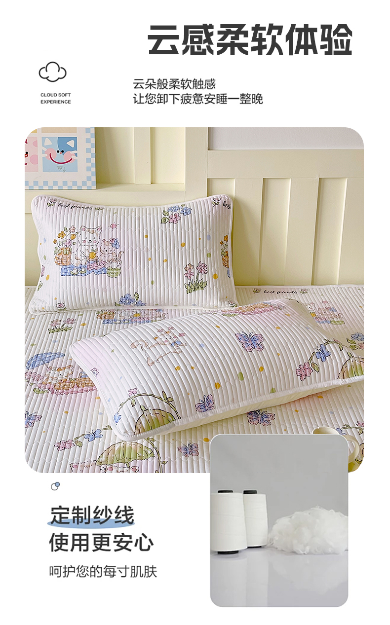 商品名称:金鑫汇家纺 2025新款A类全绗缝夹棉印花枕套 喵喵日记