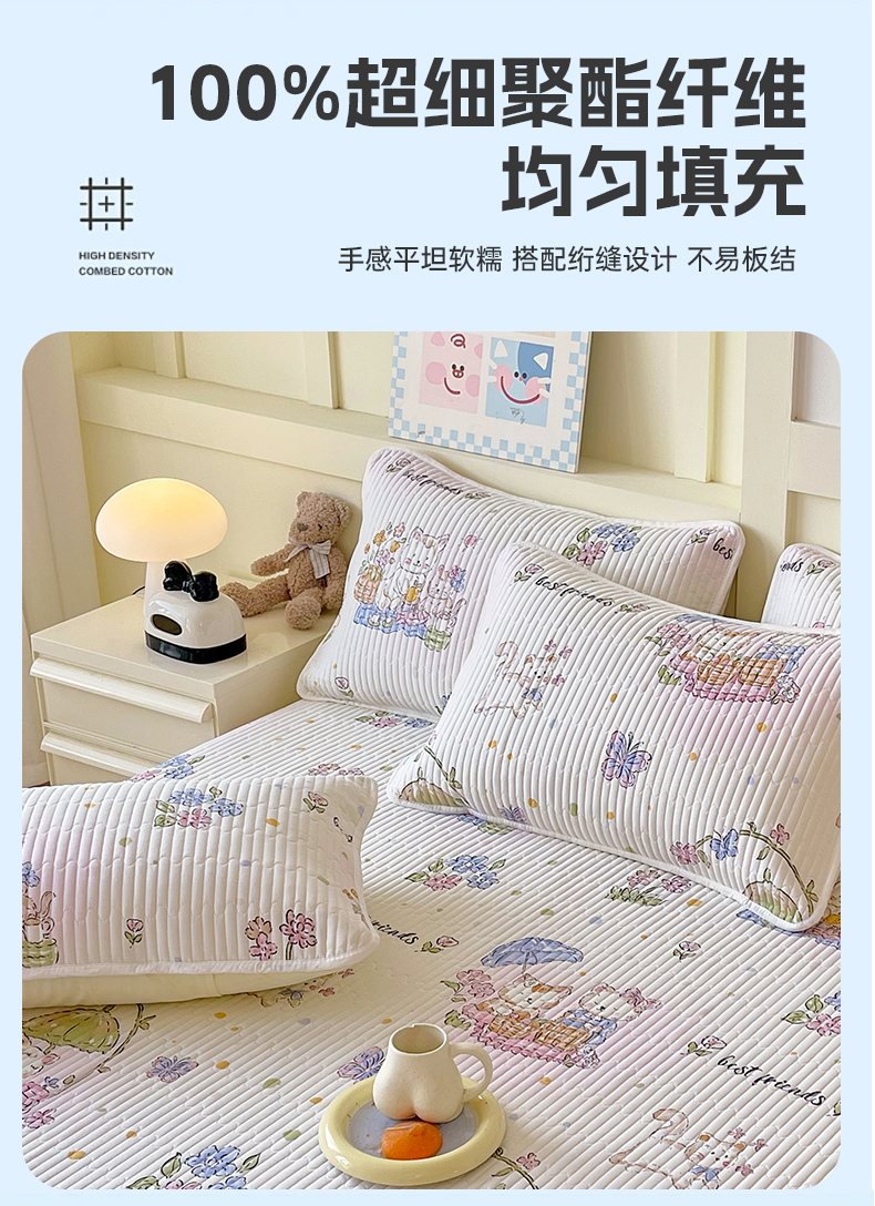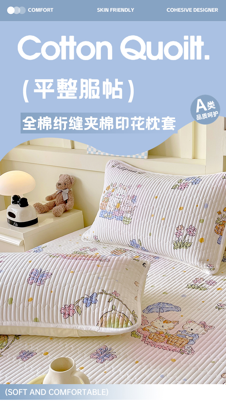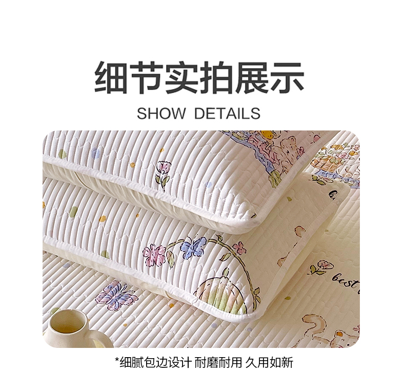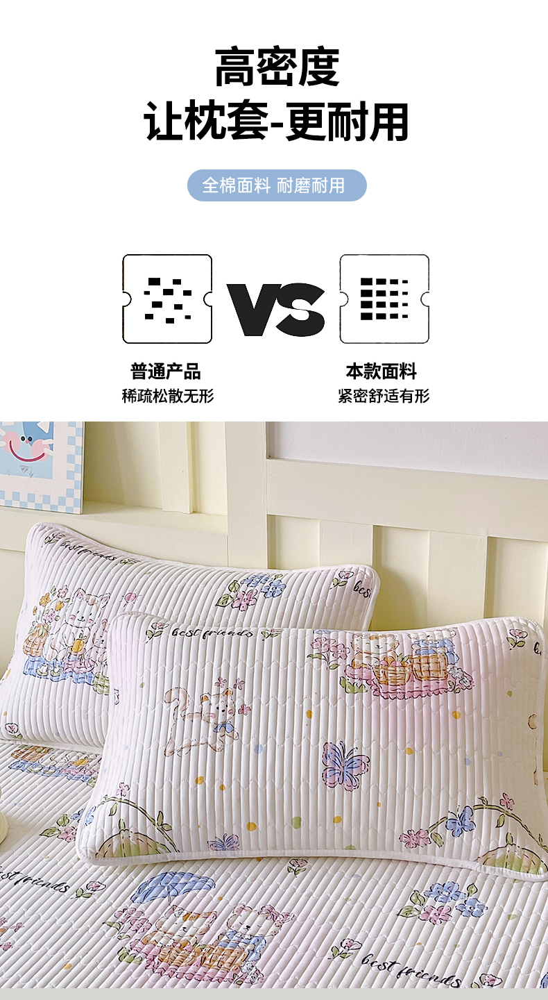 商品名称:金鑫汇家纺 2025新款A类全绗缝夹棉印花枕套 喵喵日记