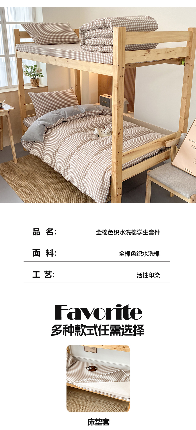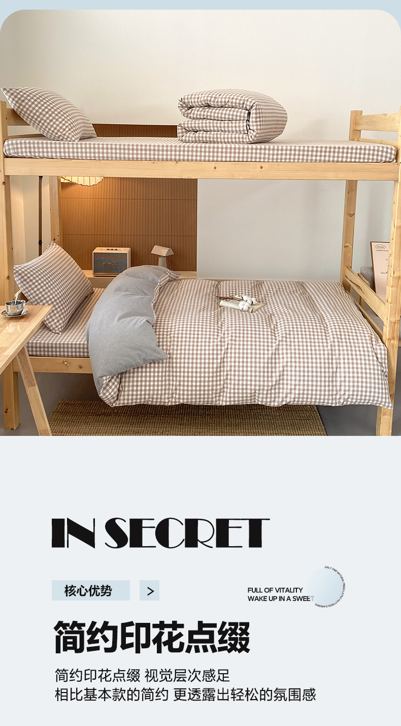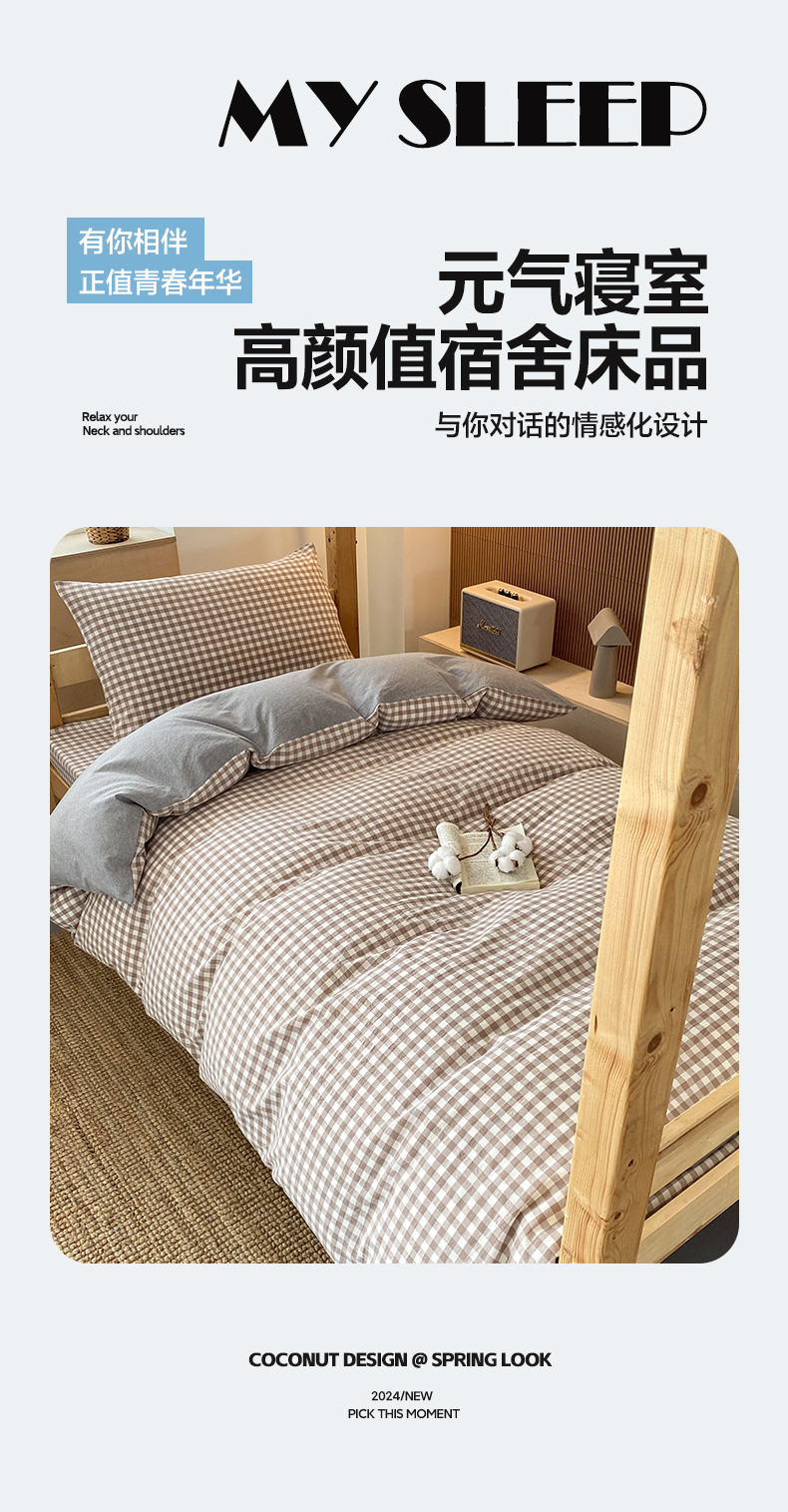 当前位置: 91家纺网 > 商品网购 > 床品套件 > 三件套 > 鸣升家纺 2025新款全棉纯棉色织水洗棉学生宿舍床三件套上下铺三件套六件套 米小格