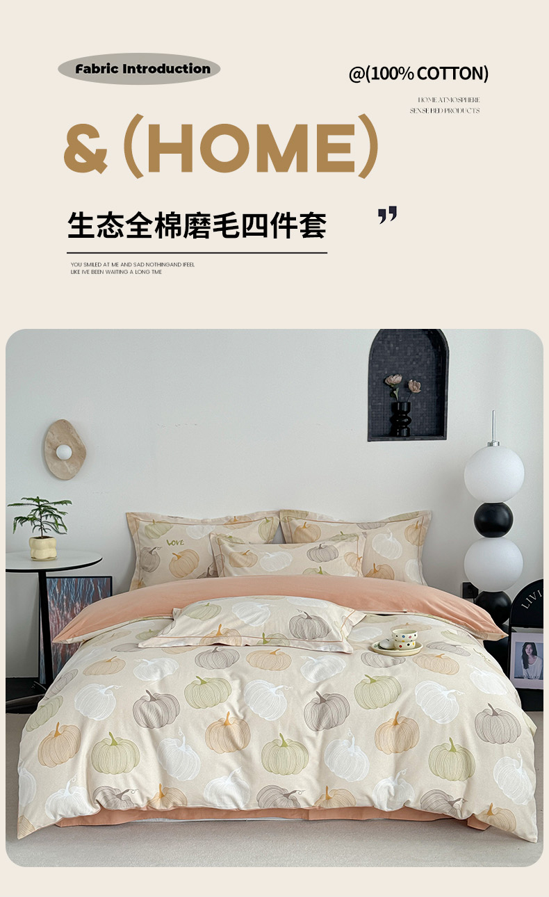 当前位置: 91家纺网 > 商品网购 > 床品套件 > 四件套 > 普通磨毛四件套 > 艾迪尚家纺 2025新款生态全棉纯棉磨毛印花四件套 如意-桔