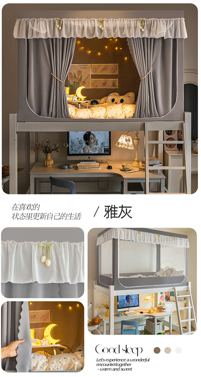当前位置: 91家纺网 > 商品网购 > 床上用品 > 蚊帐 > 学生蚊帐 > 艾晶美家纺有限公司 2025新款公主学生全包上下铺遮光床帘学生蚊帐 雅灰