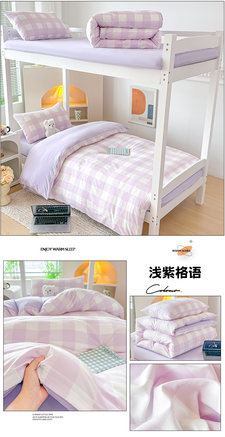 商品名称:梓之赫 2025新款学生季宿舍三件套 浅紫格语