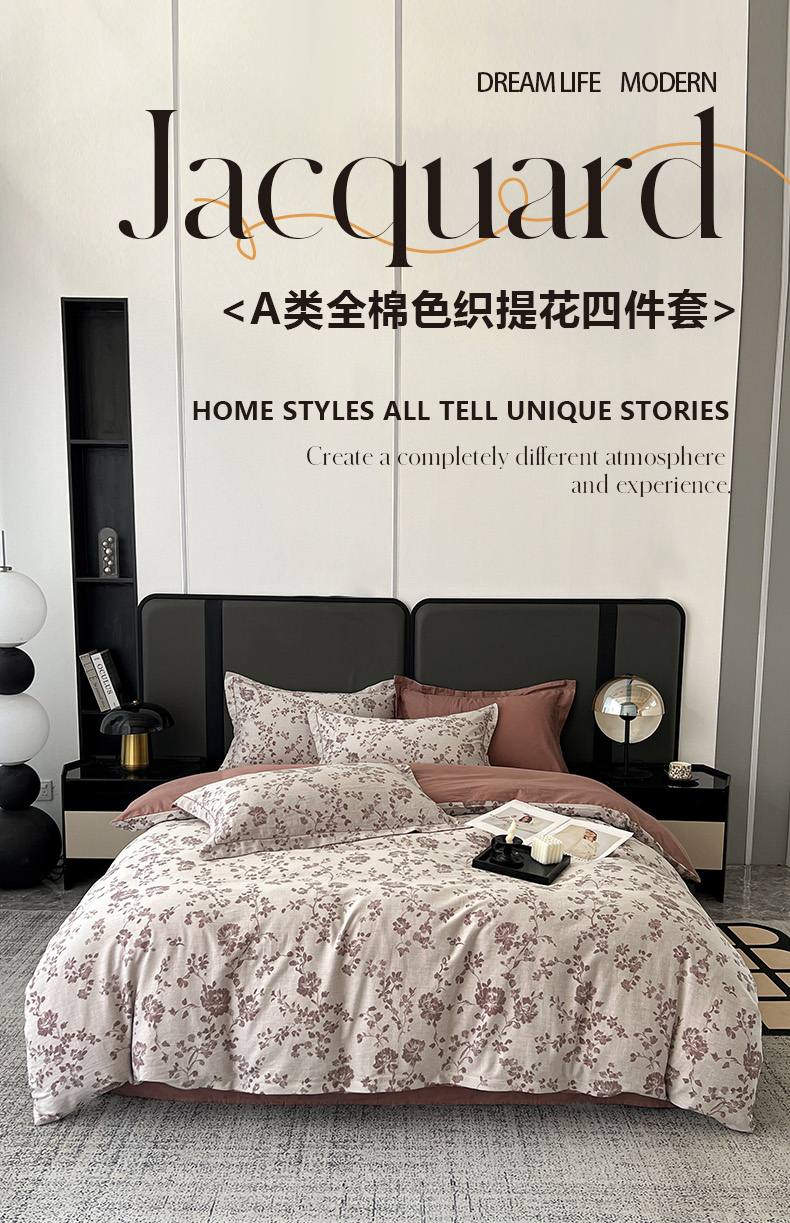 当前位置: 91家纺网 > 商品网购 > 床品套件 > 四件套 > 全棉普通四件套 > 锦彩家居 2025新款A类60支全棉纯棉色织提花四件套-复古风系列 屋顶花园-豆沙