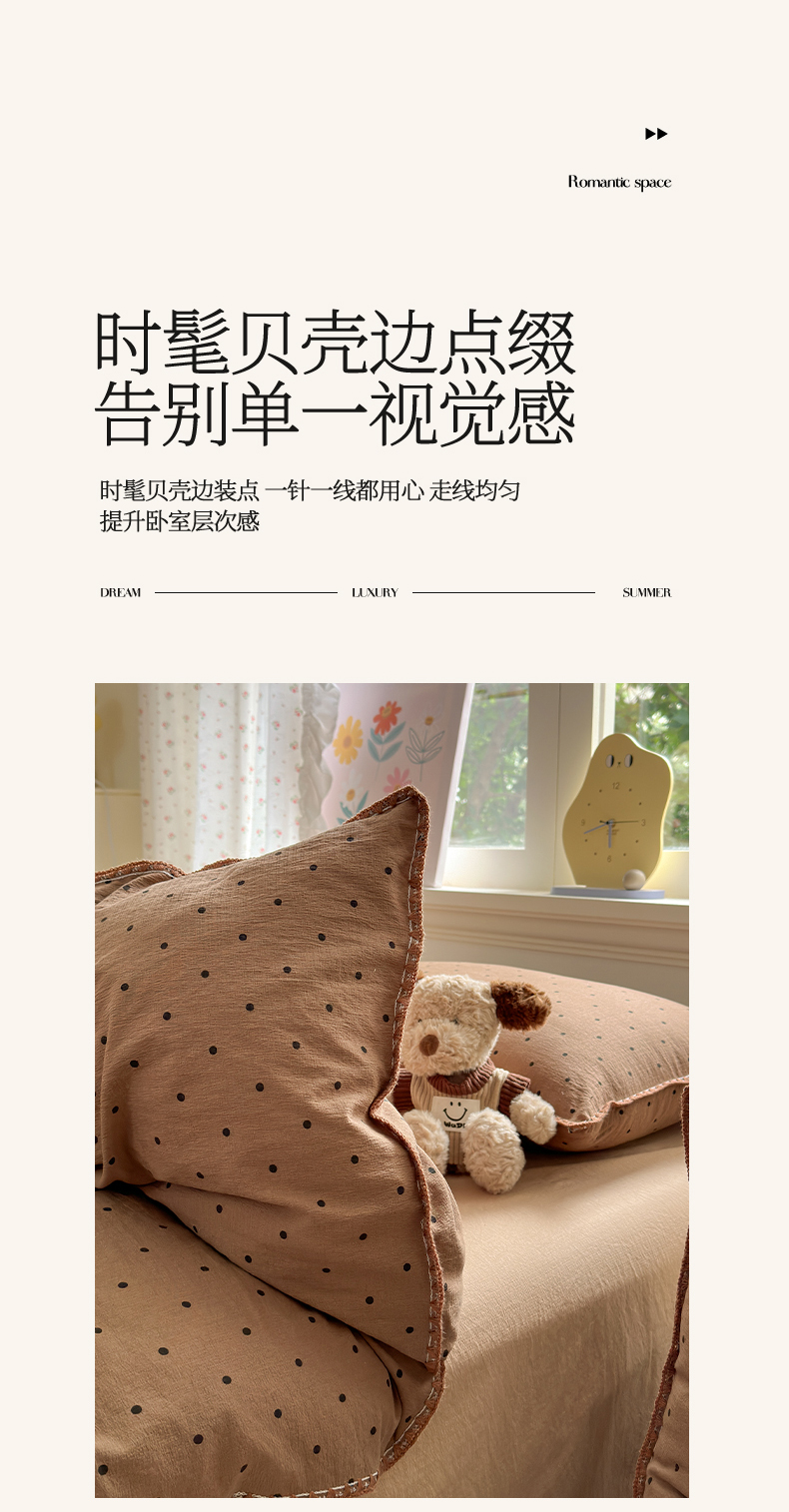 (总)喜颜 2025新款爆款云感提花皱皱纱全棉镂空花边四件套学生宿舍三件套,镂空花边-波点咖,镂空花边-波点蓝,镂空花边-波点奶黄,镂空花边-波点浅粉,镂空花边-波点浅紫,镂空花边-波点炫彩
