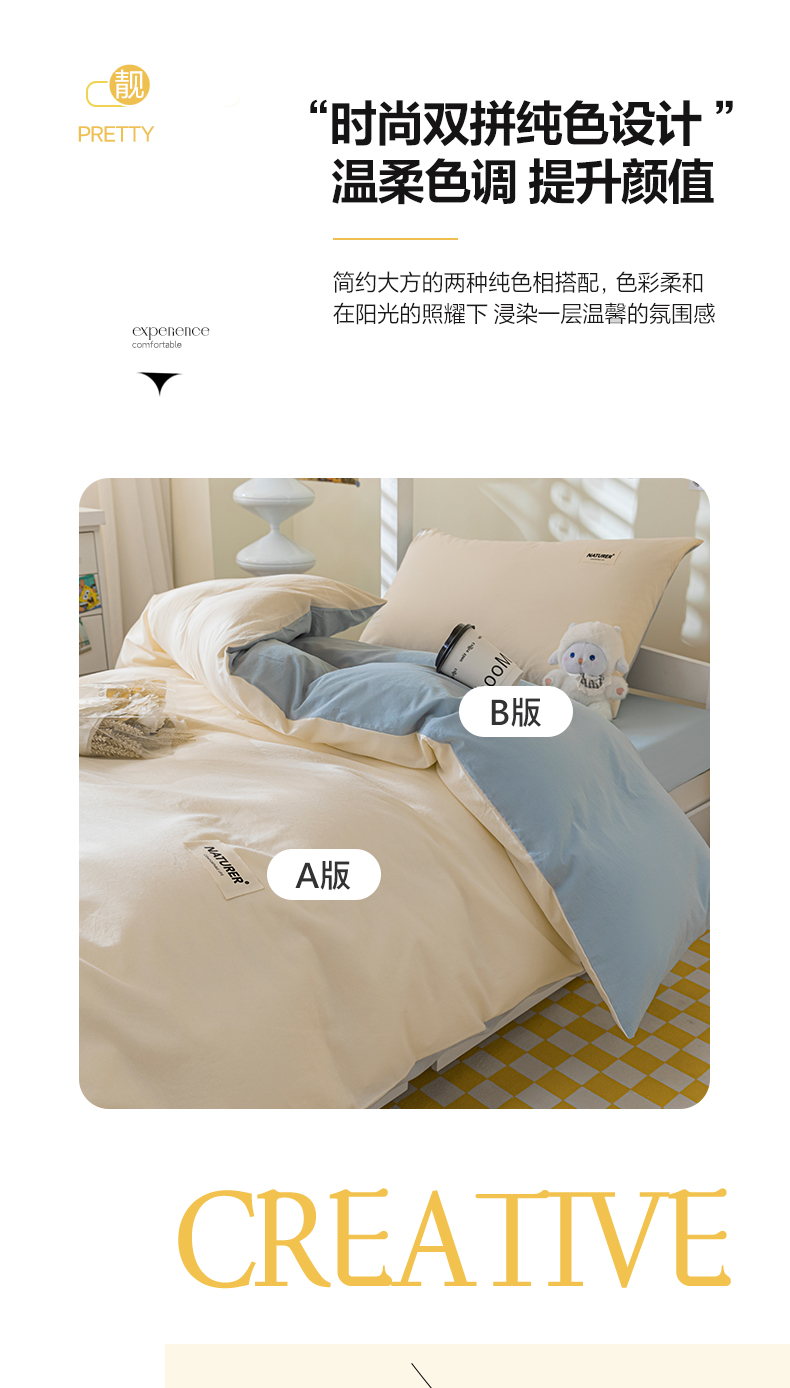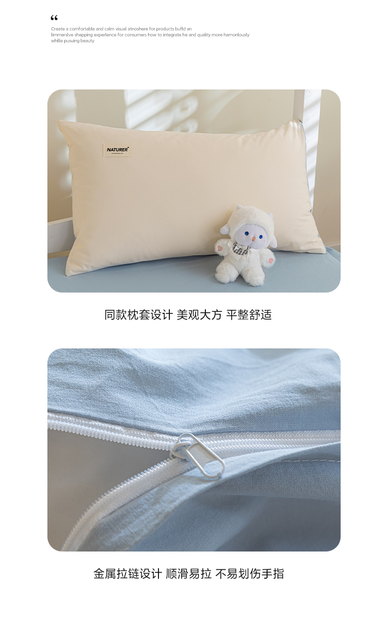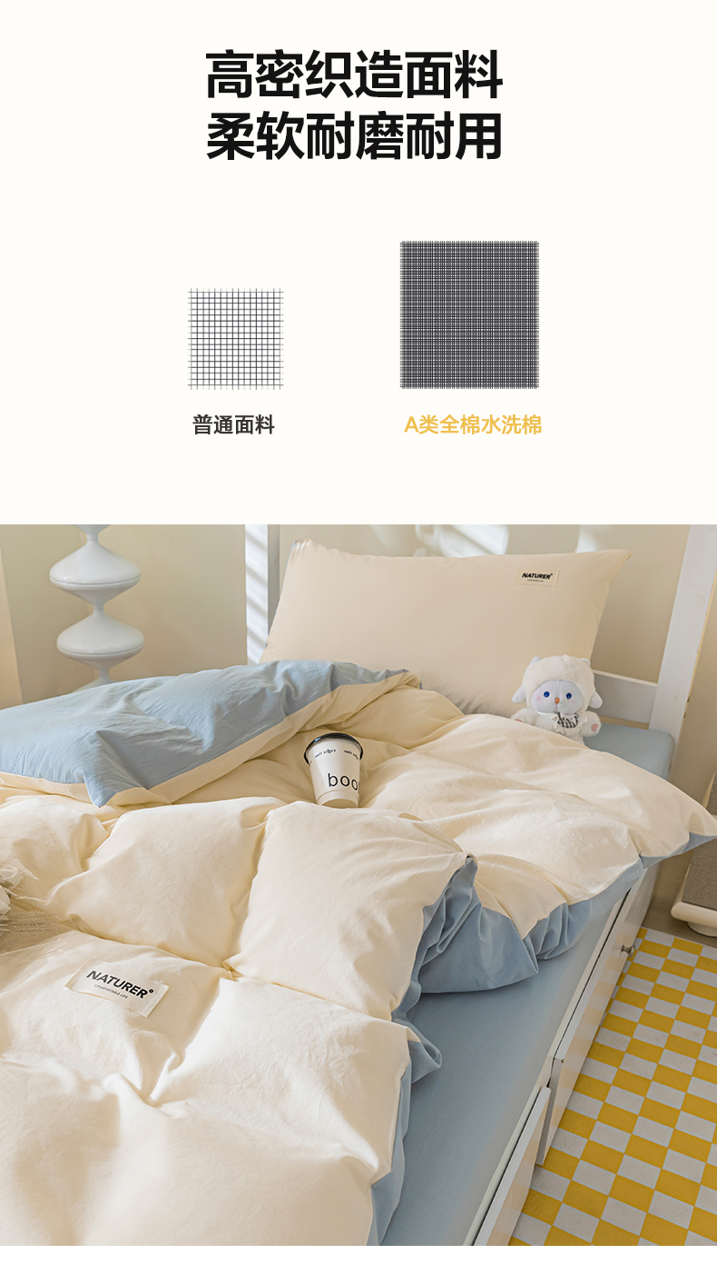 商品名称:佳汐蓝家纺 2025新款A类全棉水洗棉学生三件套 贴标-奶昔白+海青