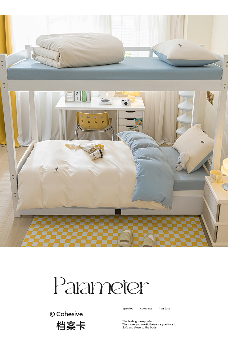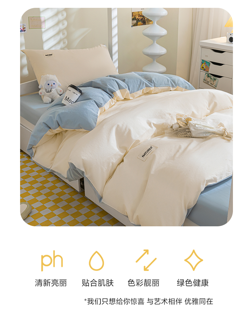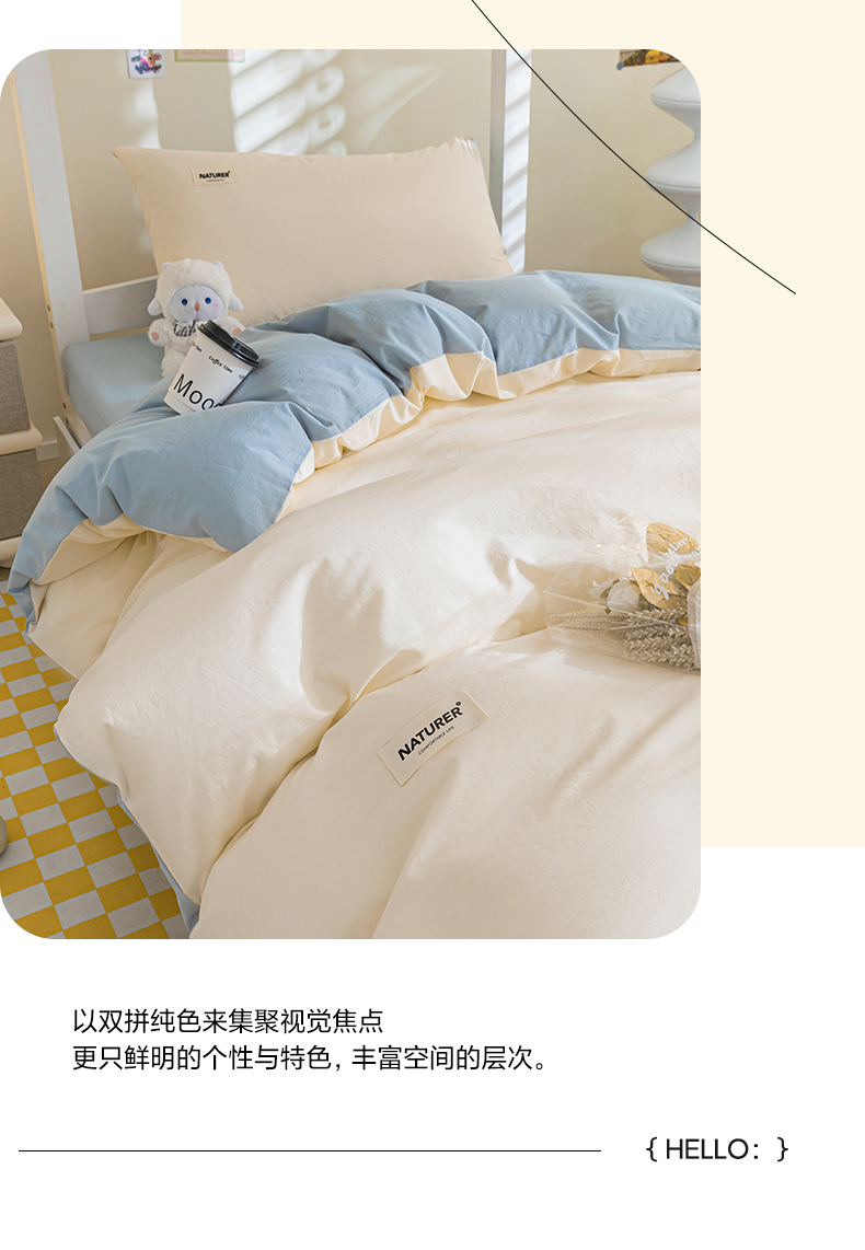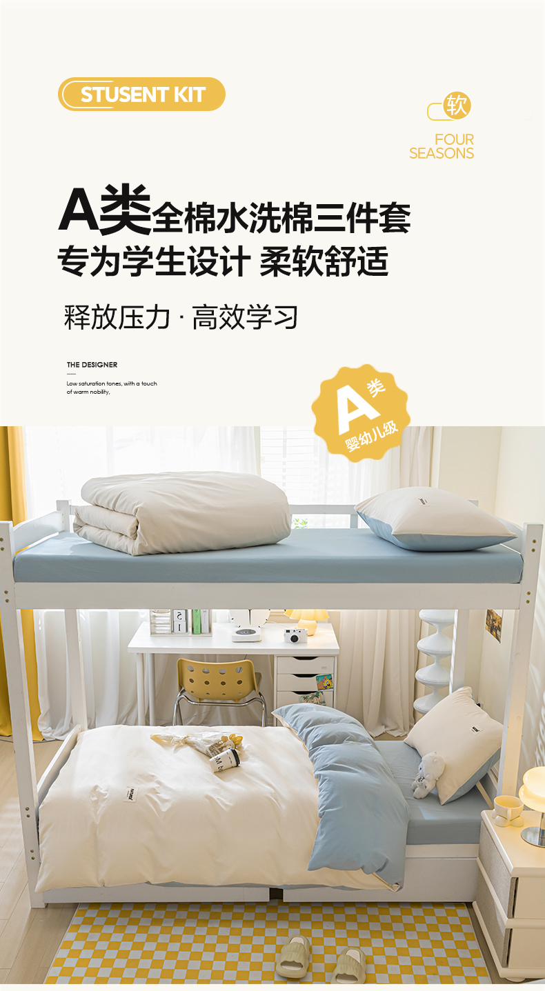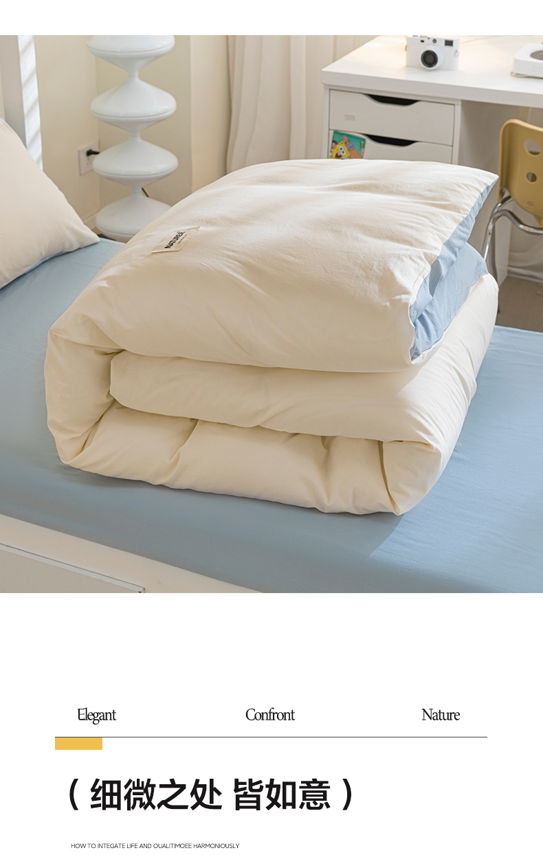 佳汐蓝家纺 2025新款A类全棉水洗棉学生三件套 贴标-奶昔白+海青
