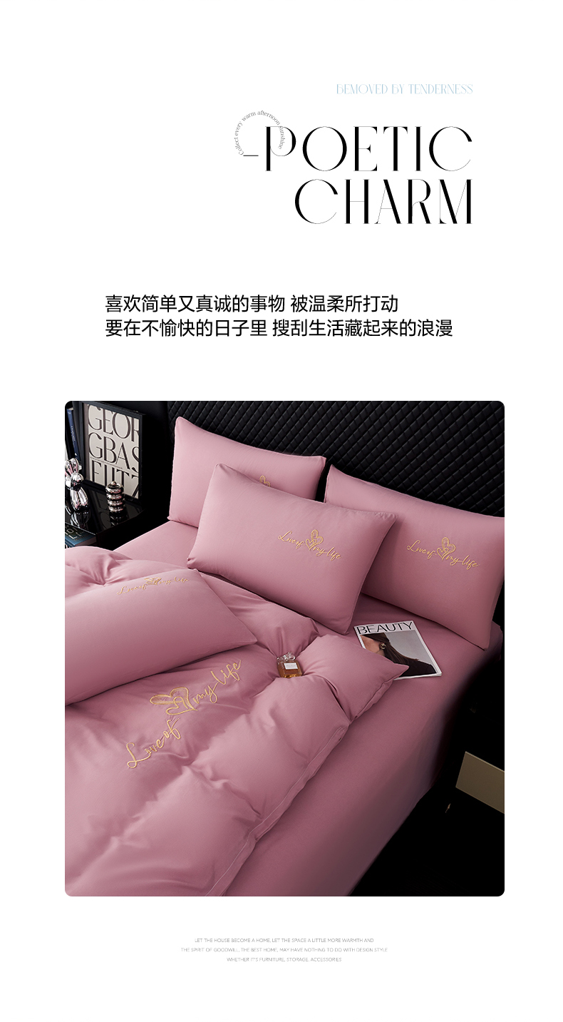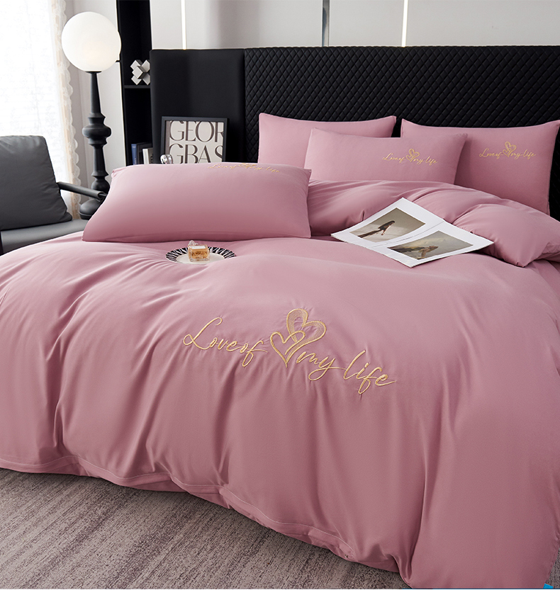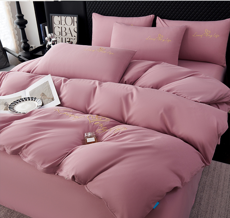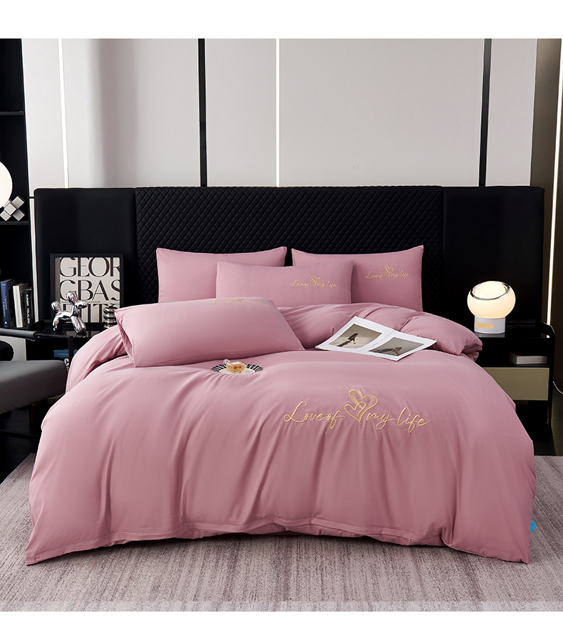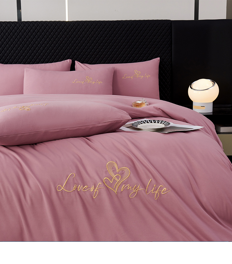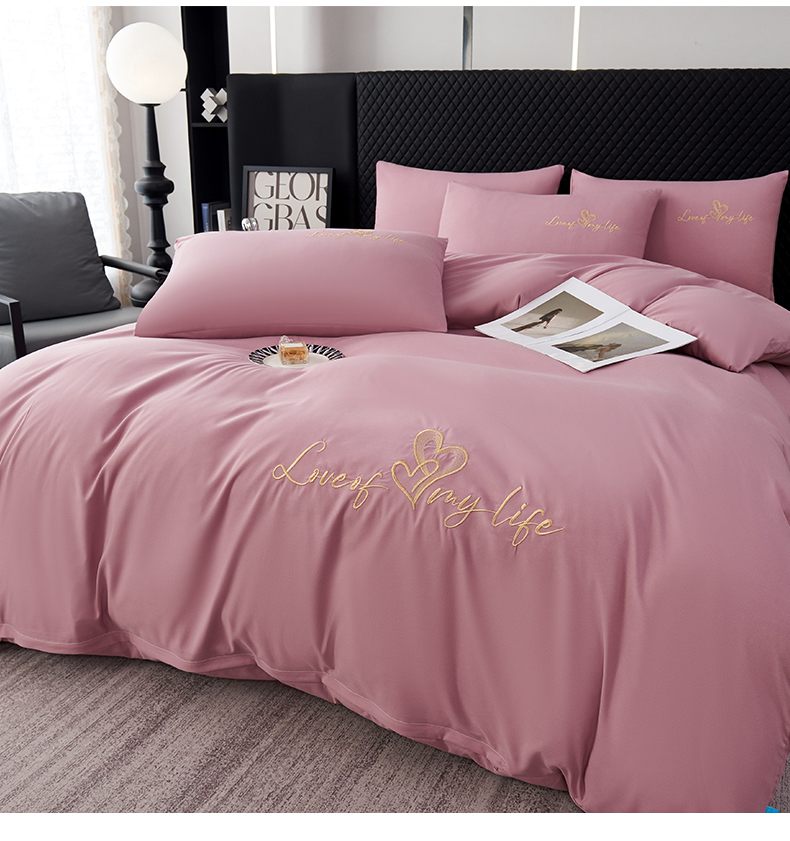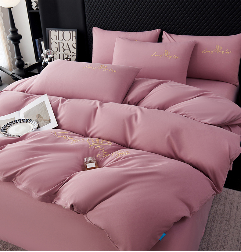 鑫缘家纺 2025新款水洗磨毛纯色绣花四件套(110克) 浅豆沙