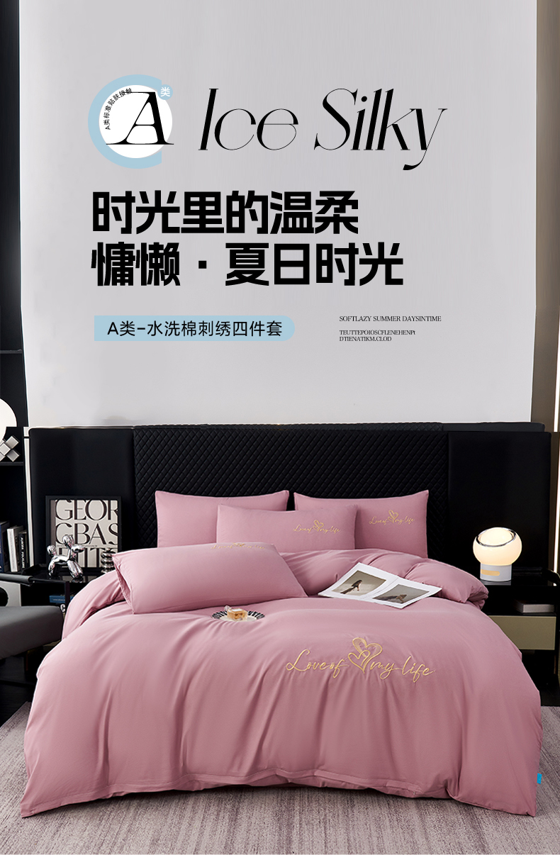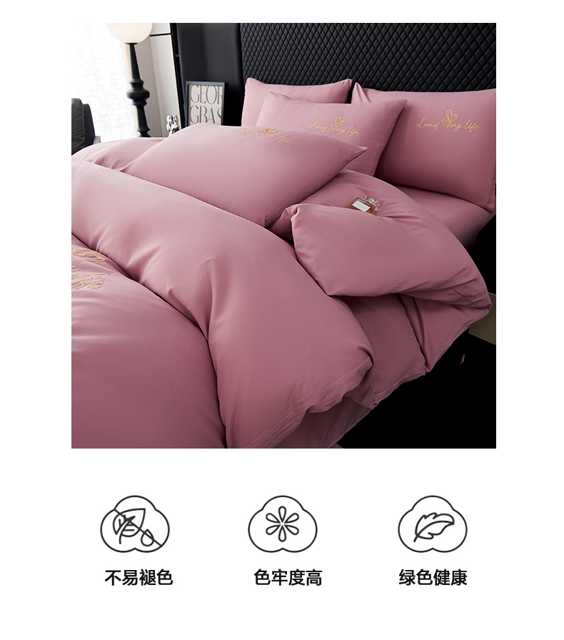 (总)鑫缘家纺 2025新款水洗磨毛纯色绣花四件套(110克),丁香紫,宝石蓝,星空灰,香槟金,石墨灰,浅豆沙
