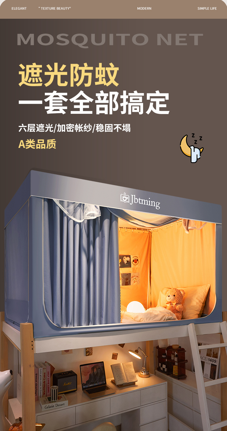 上铺0.9m全伸缩支架四面遮光无口袋 | ¥115.00 |