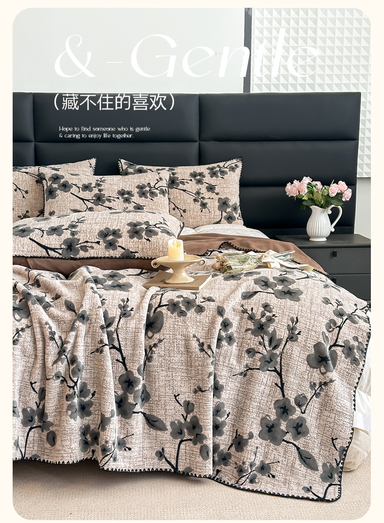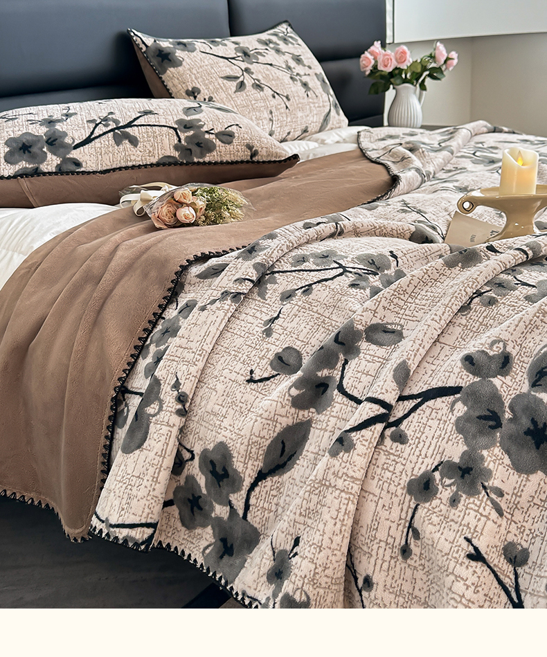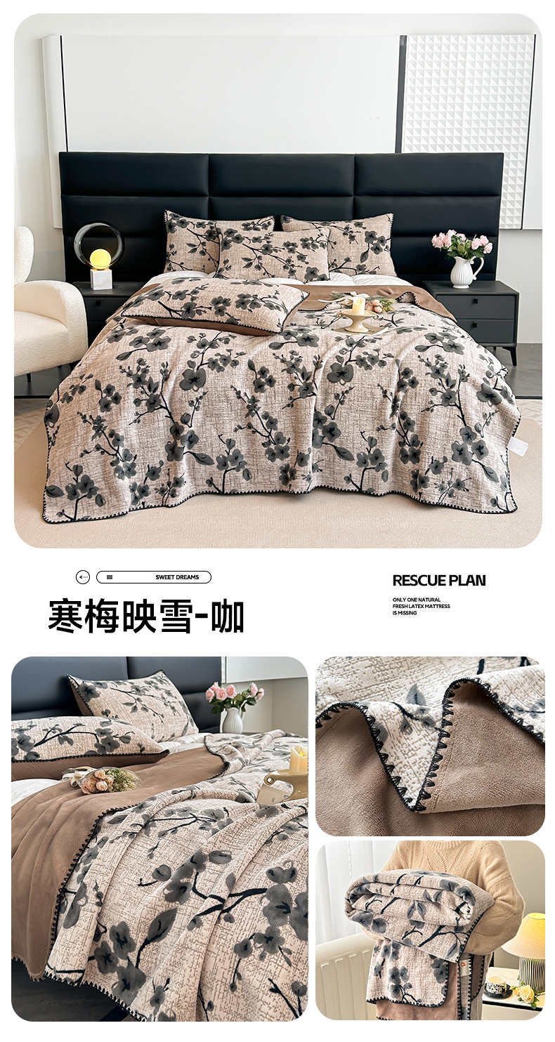 芙绣家纺 2025新款高克重双层牛奶绒毛毯加厚冬季毛毯四季毯办公室午休毯牛奶绒床单 寒梅映雪-咖