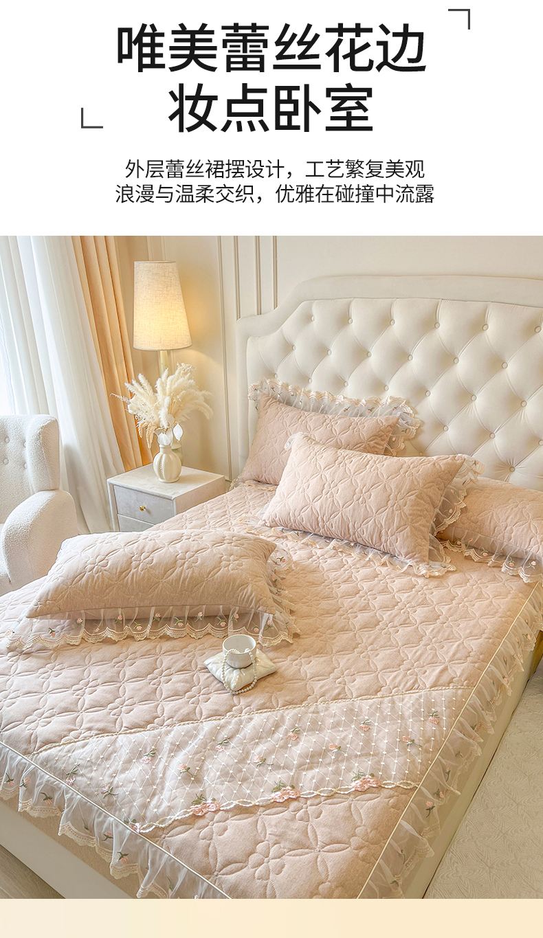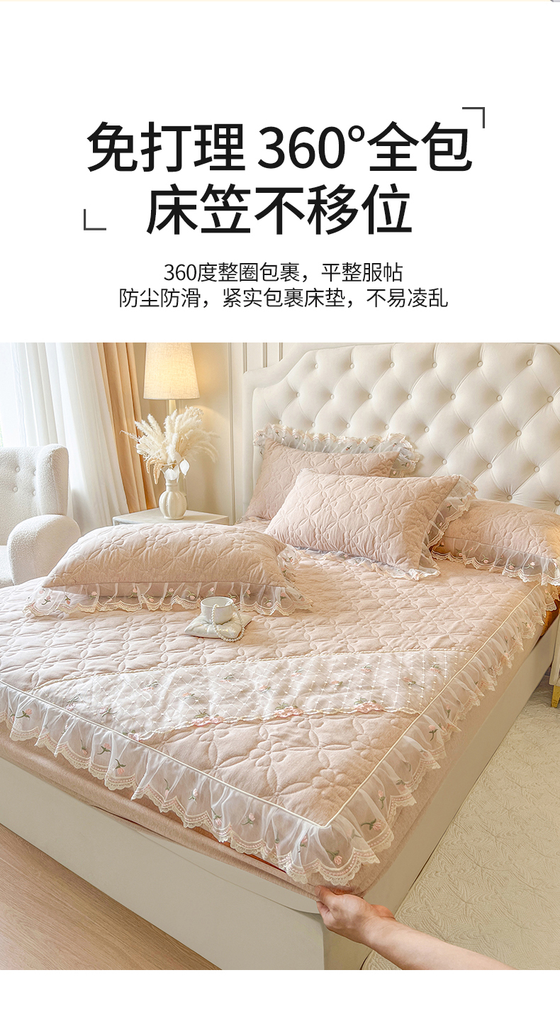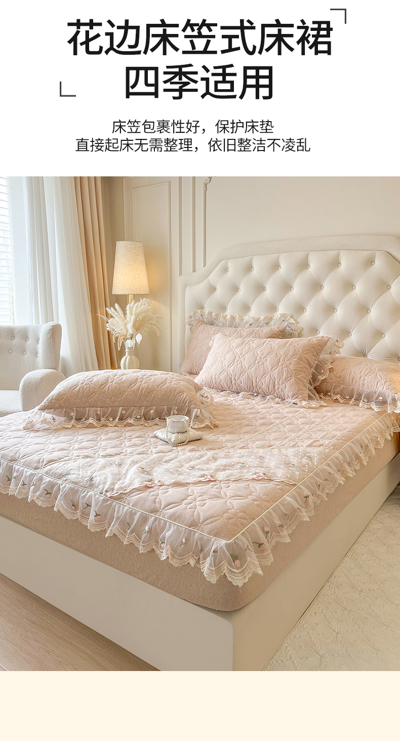 • 91家纺网 家纺一手货源 找家纺 麒豆豆 2025新款色织蕾丝边床裙款床笠-花亦然 花亦然-奶茶色