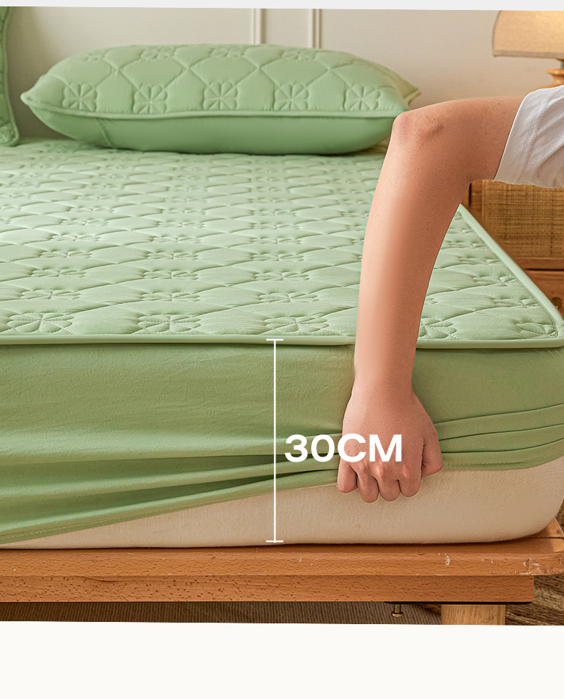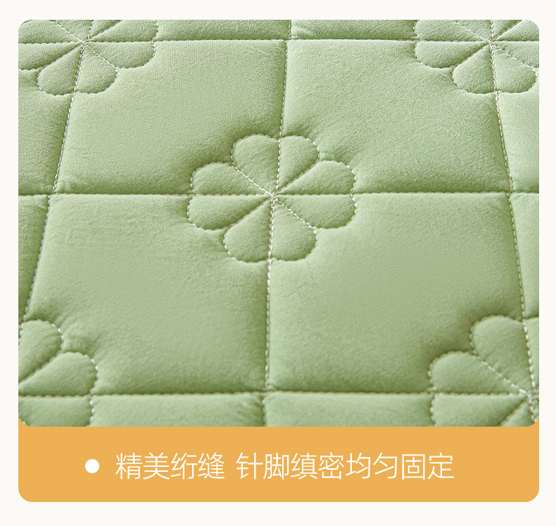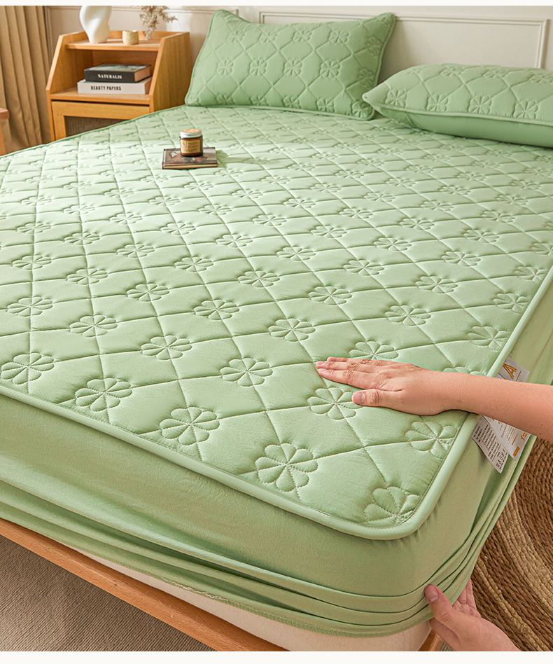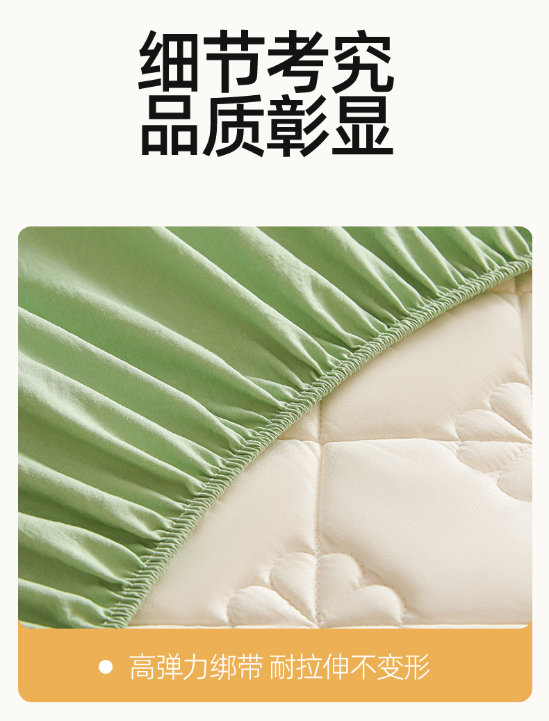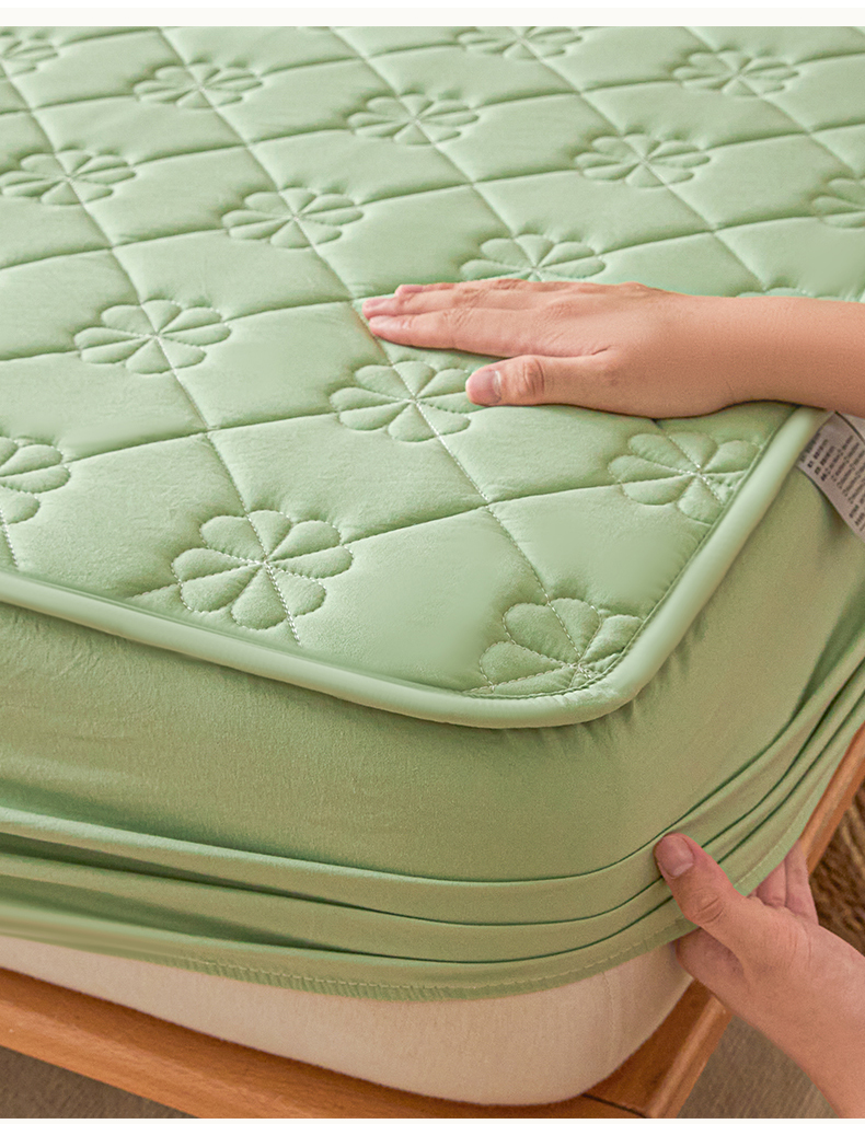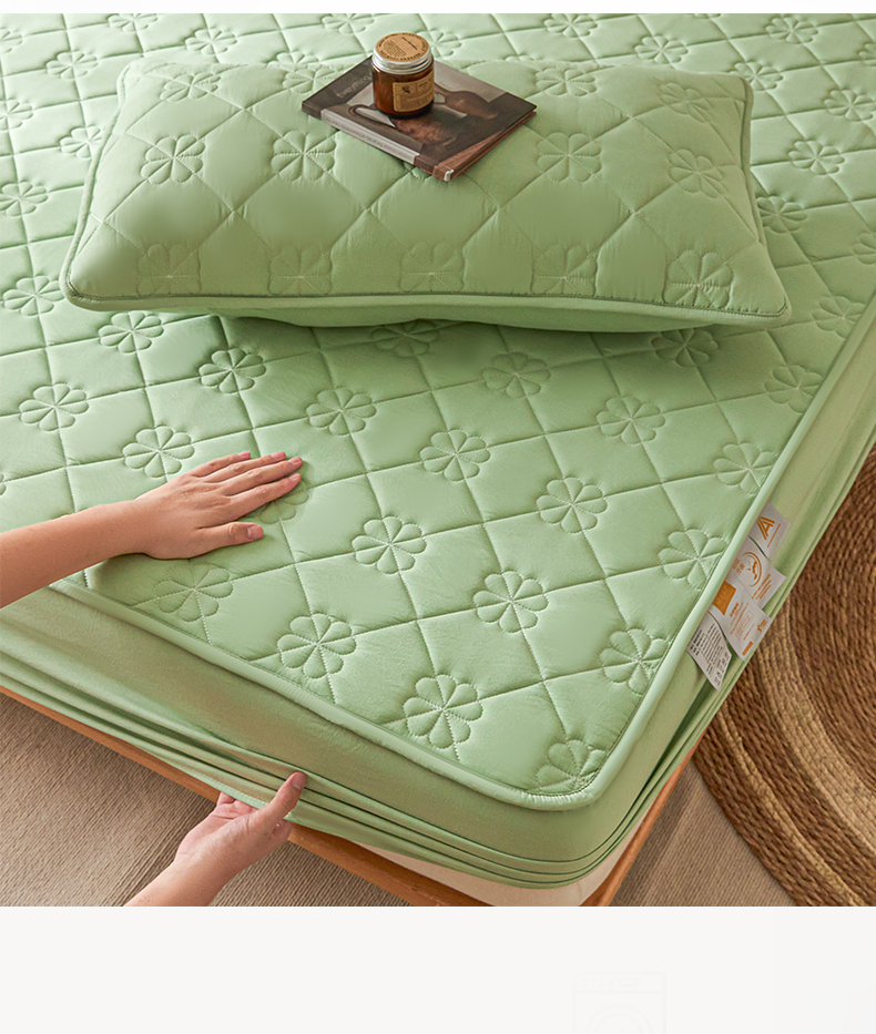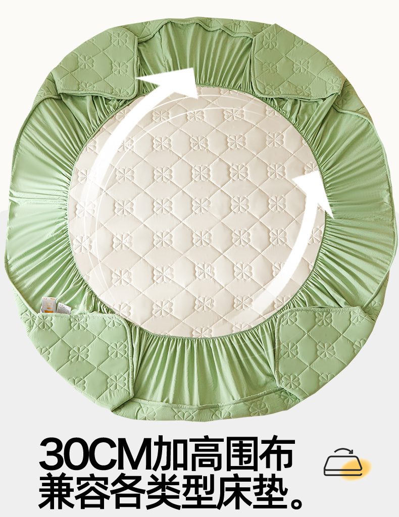 • 91家纺网 家纺一手货源 找家纺 雯豆家纺 2025新款简约防水款水洗棉夹棉床笠 幸运草-清雅绿