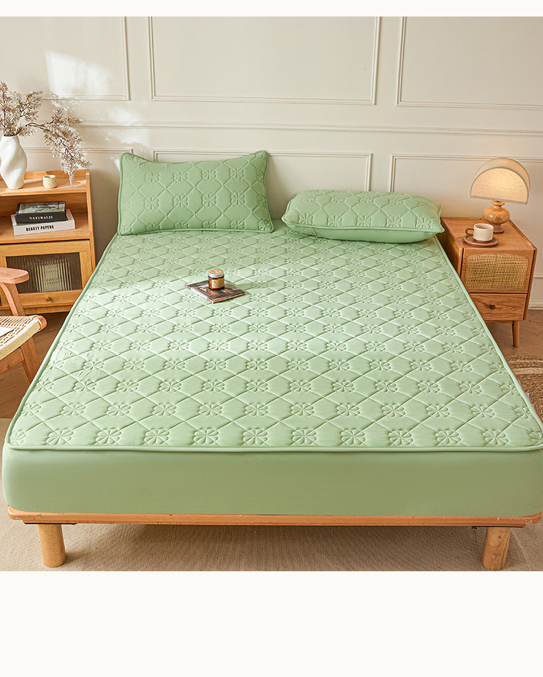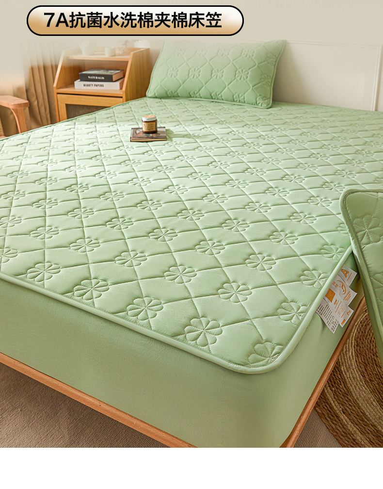 雯豆家纺 2025新款简约防水款水洗棉夹棉床笠 幸运草-清雅绿