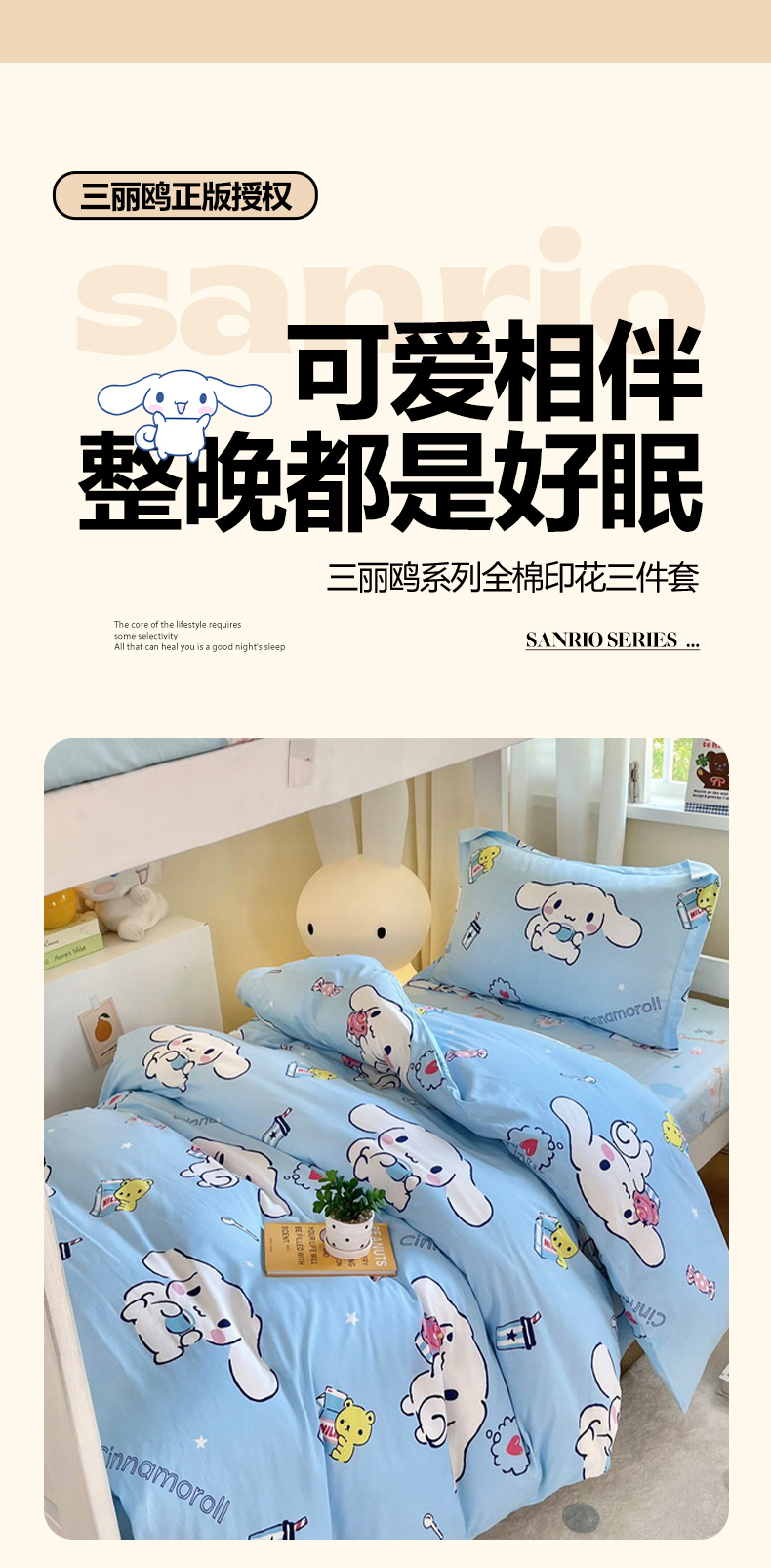 当前位置: 91家纺网 > 商品网购 > 床品套件 > 三件套 > 蘭菲家纺 2025新款三丽鸥系列全棉印花三件套、四件套 小团子