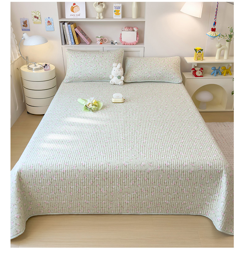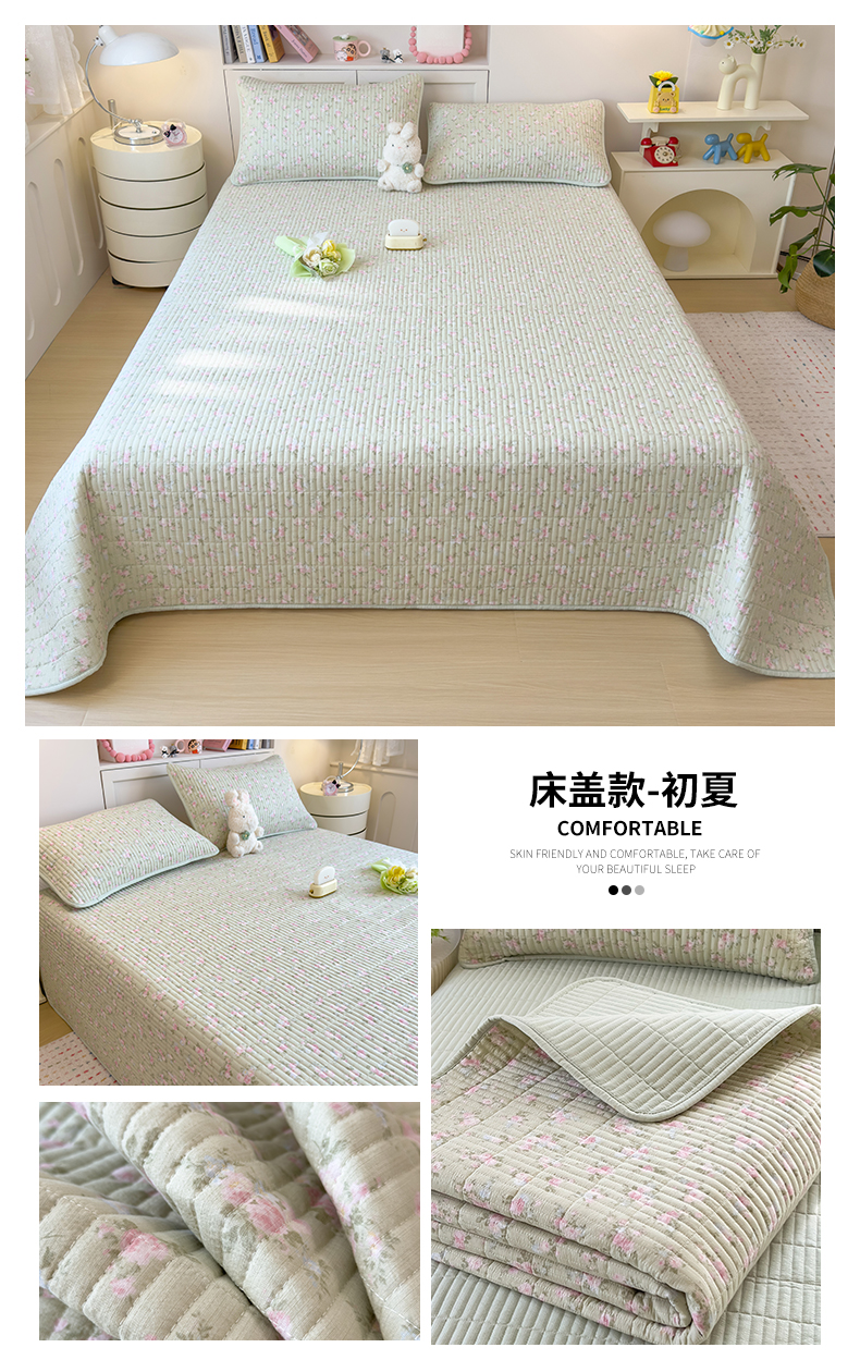 • 91家纺网 家纺一手货源 找家纺 雯豆家纺 2025新品皱皱双层纱床盖泡泡纱床罩保护套 浪漫花语