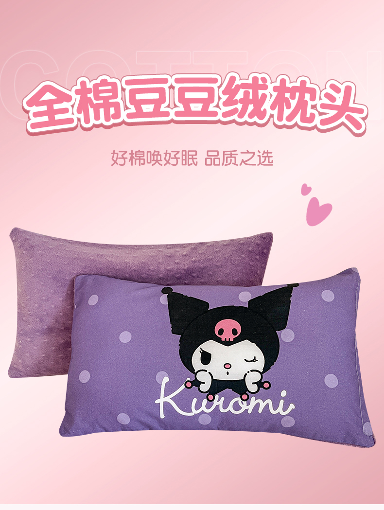 当前位置: 91家纺网 > 商品网购 > 枕头/枕芯/保健枕/颈椎枕 > 普通枕芯 > 孩子王家纺 2025新款A棉B绒全棉纯棉豆豆枕学生幼儿园系列 圆点库洛米 30x50cm/只(带标)