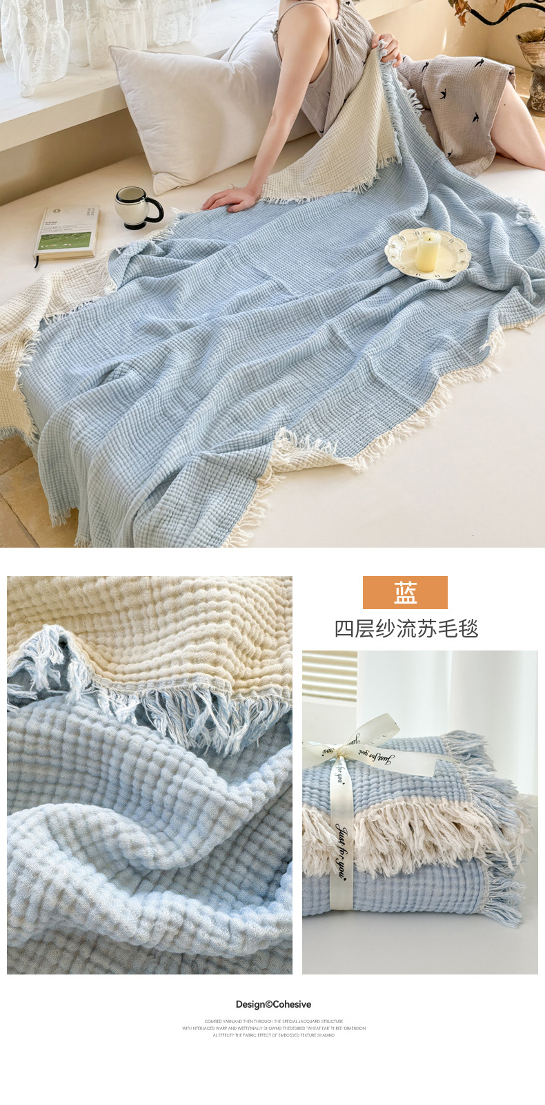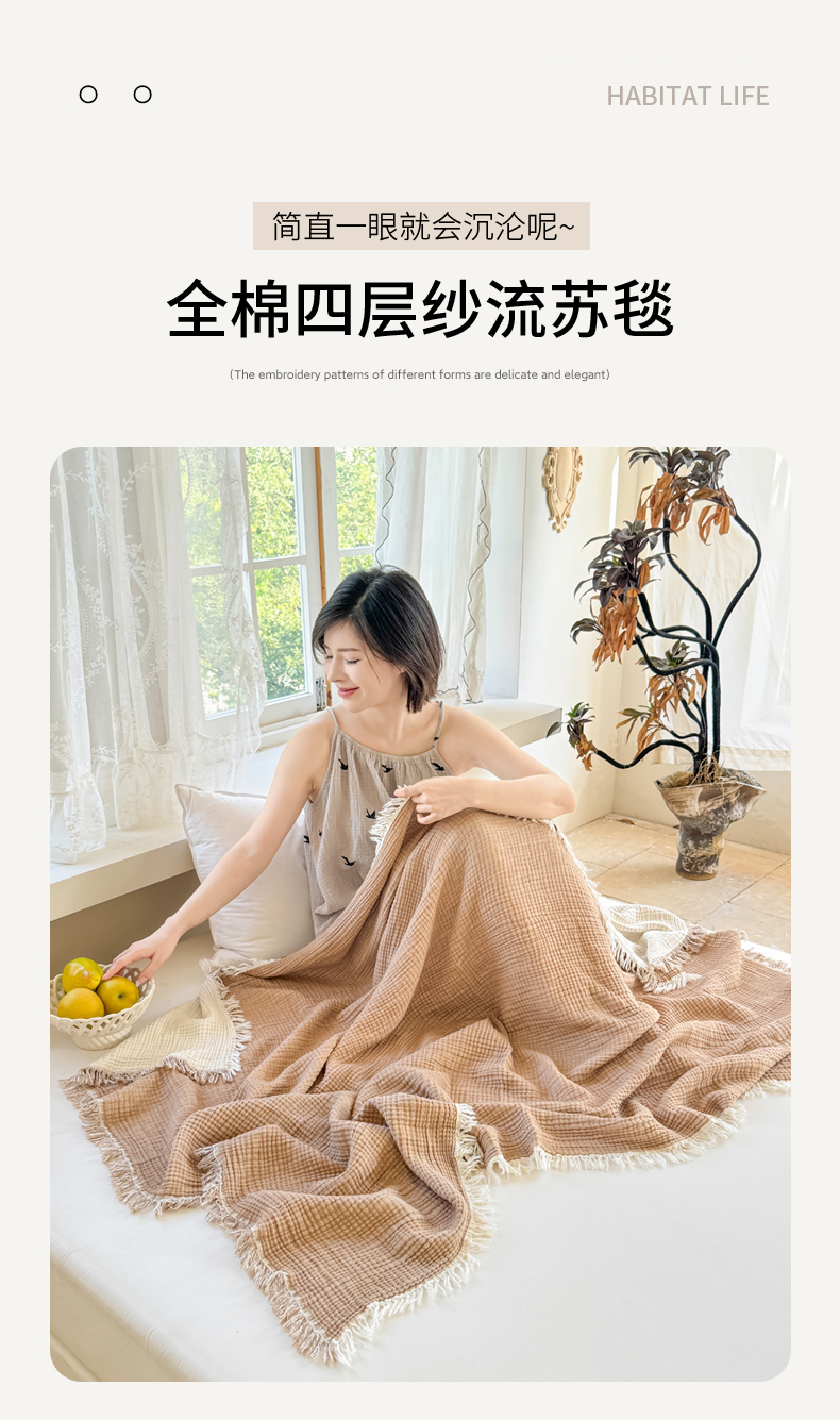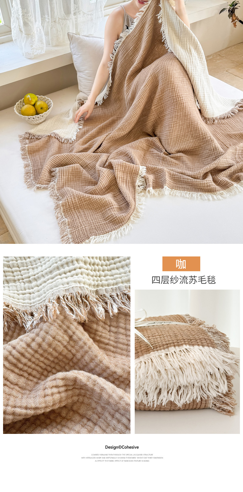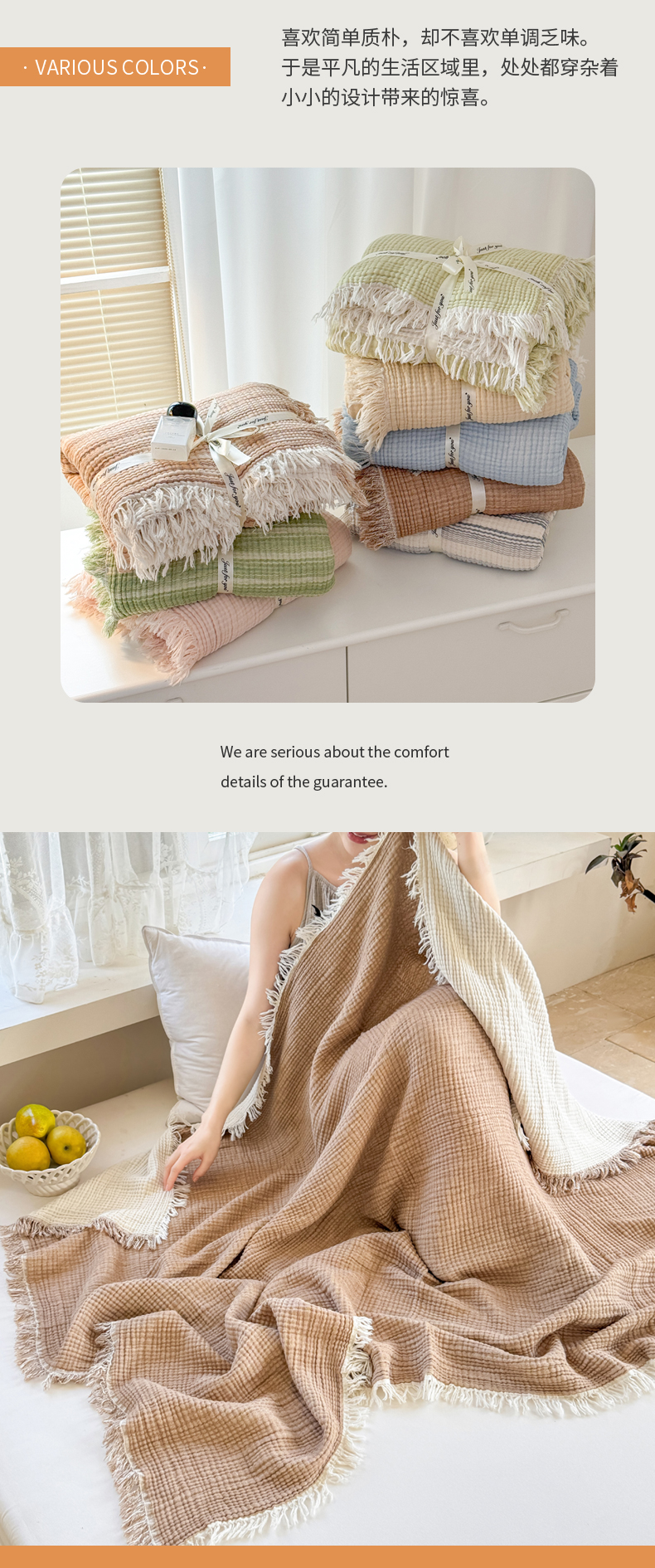 (总)丹本家纺 2025新款毛毯双层纱流苏全棉纯棉毯纯棉流苏款盖毯夏被夏凉被空调被