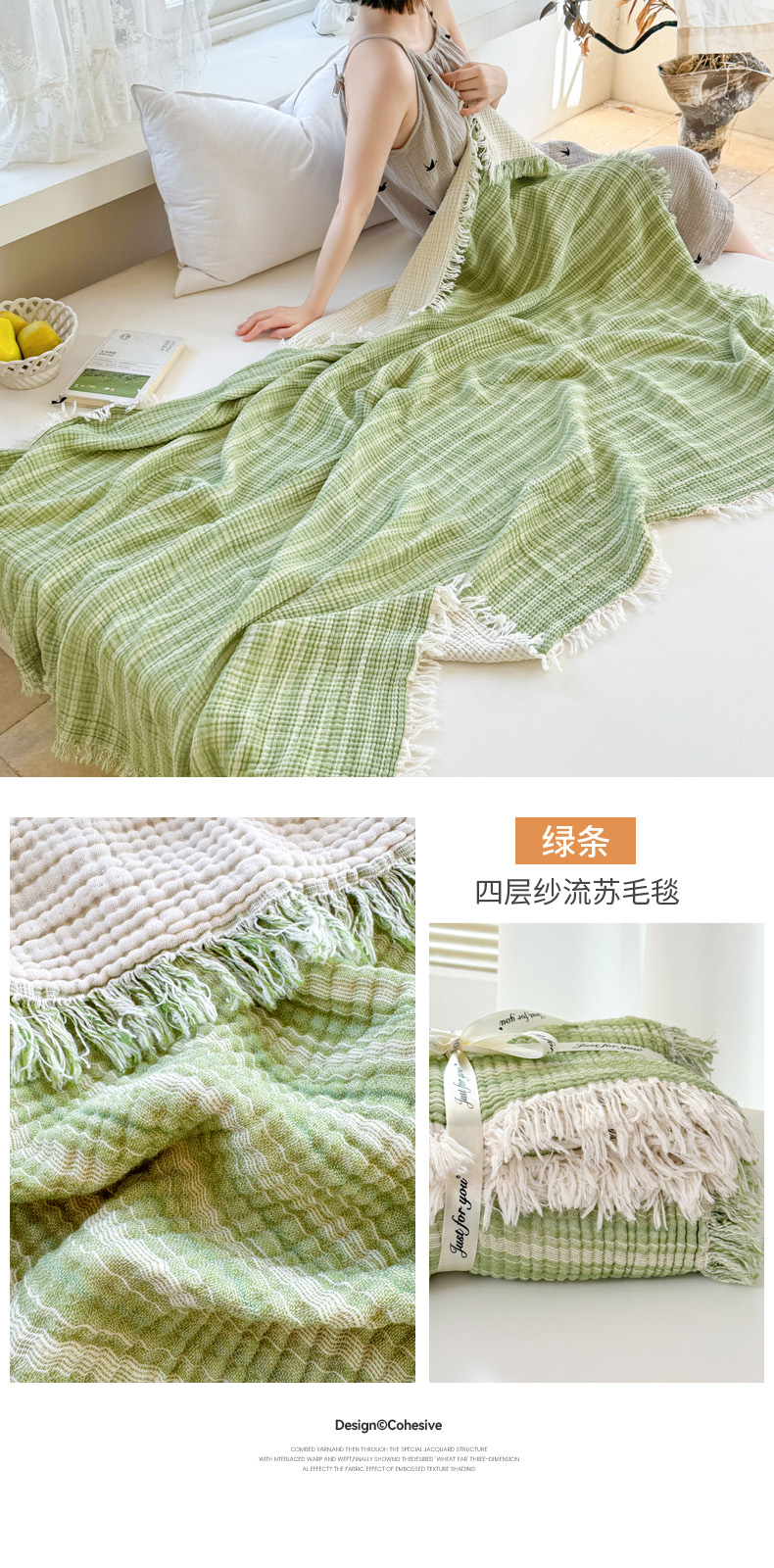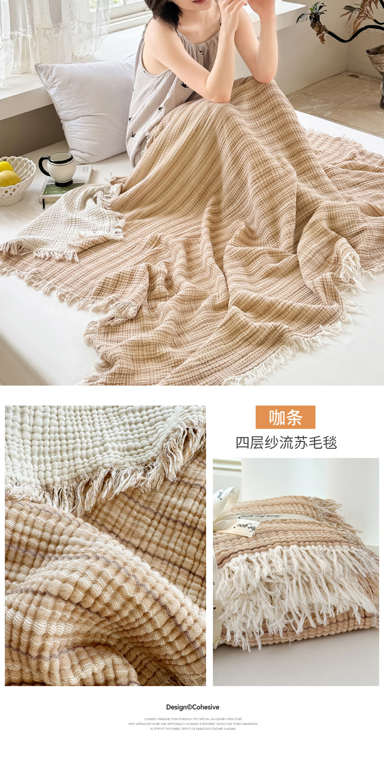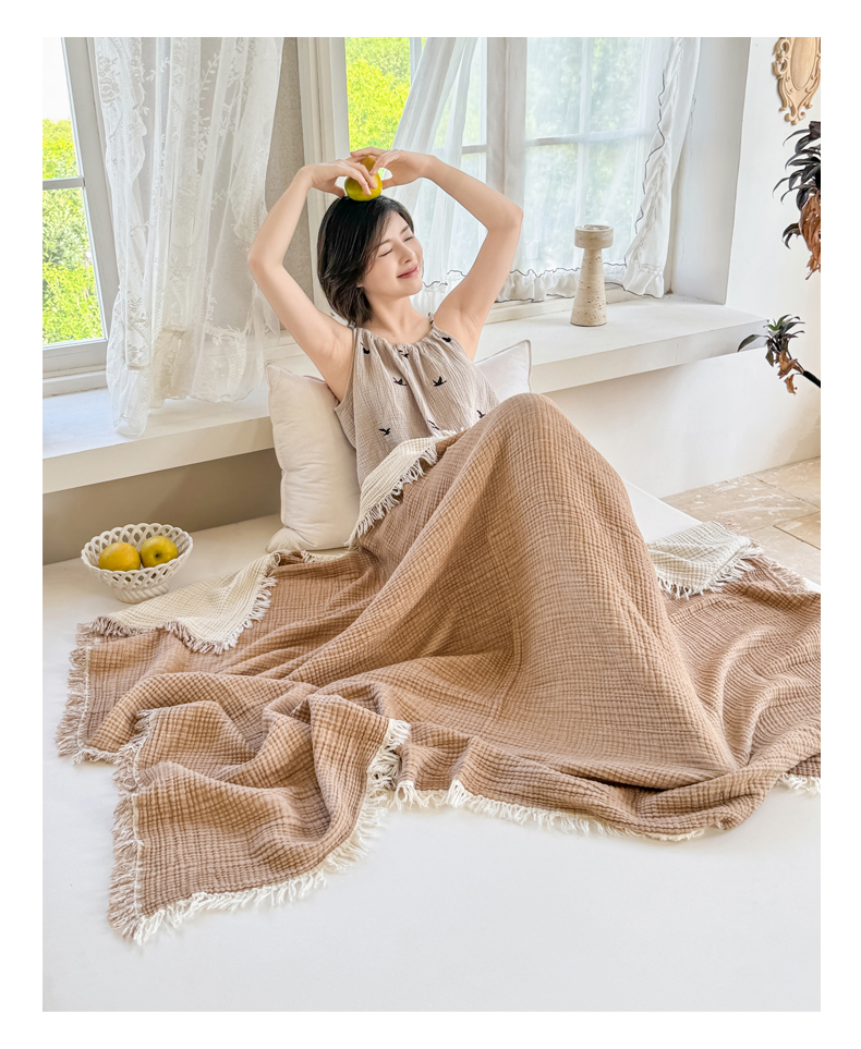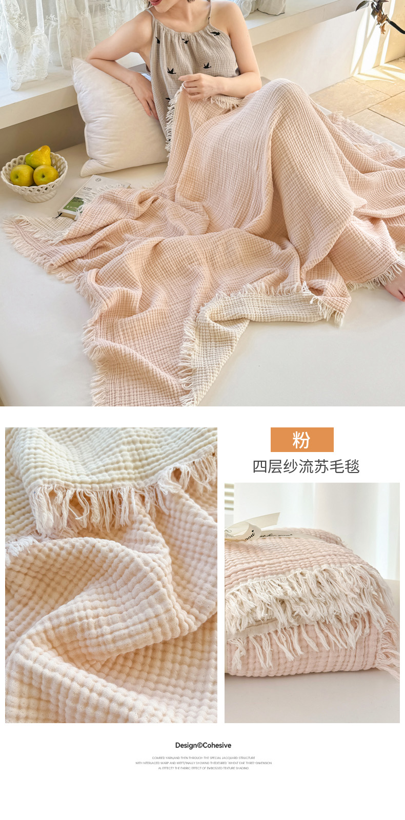 (总)丹本家纺 2025新款毛毯双层纱流苏全棉纯棉毯纯棉流苏款盖毯夏被夏凉被空调被
