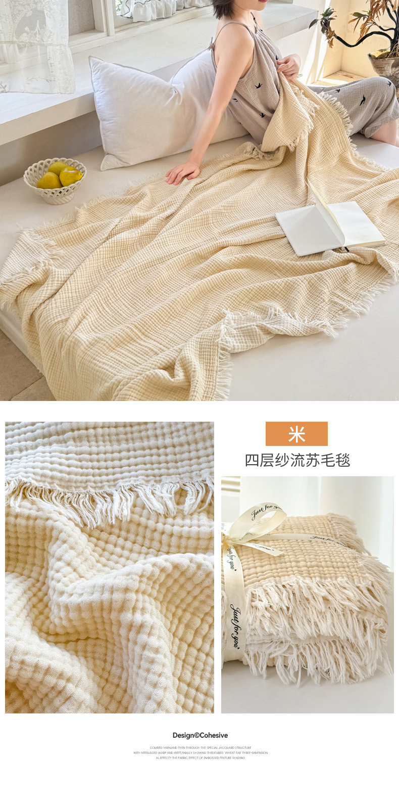 当前位置: 91家纺网 > 商品网购 > 毛毯休闲毯绒毯 > 毛毯 > (总)丹本家纺 2025新款毛毯双层纱流苏全棉纯棉毯纯棉流苏款盖毯夏被夏凉被空调被