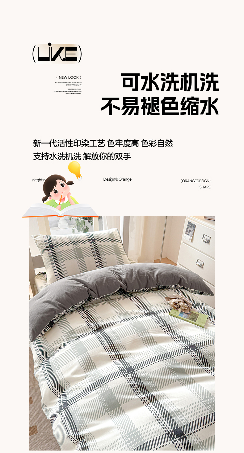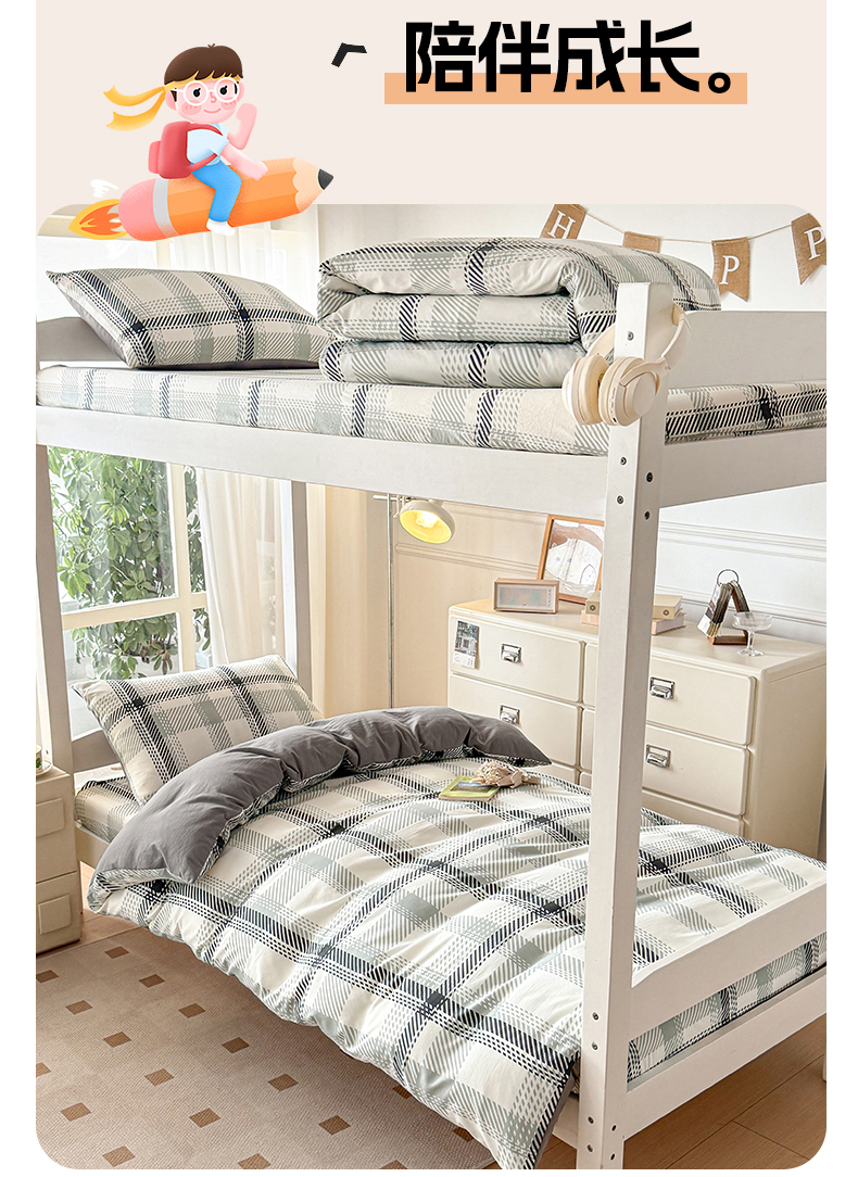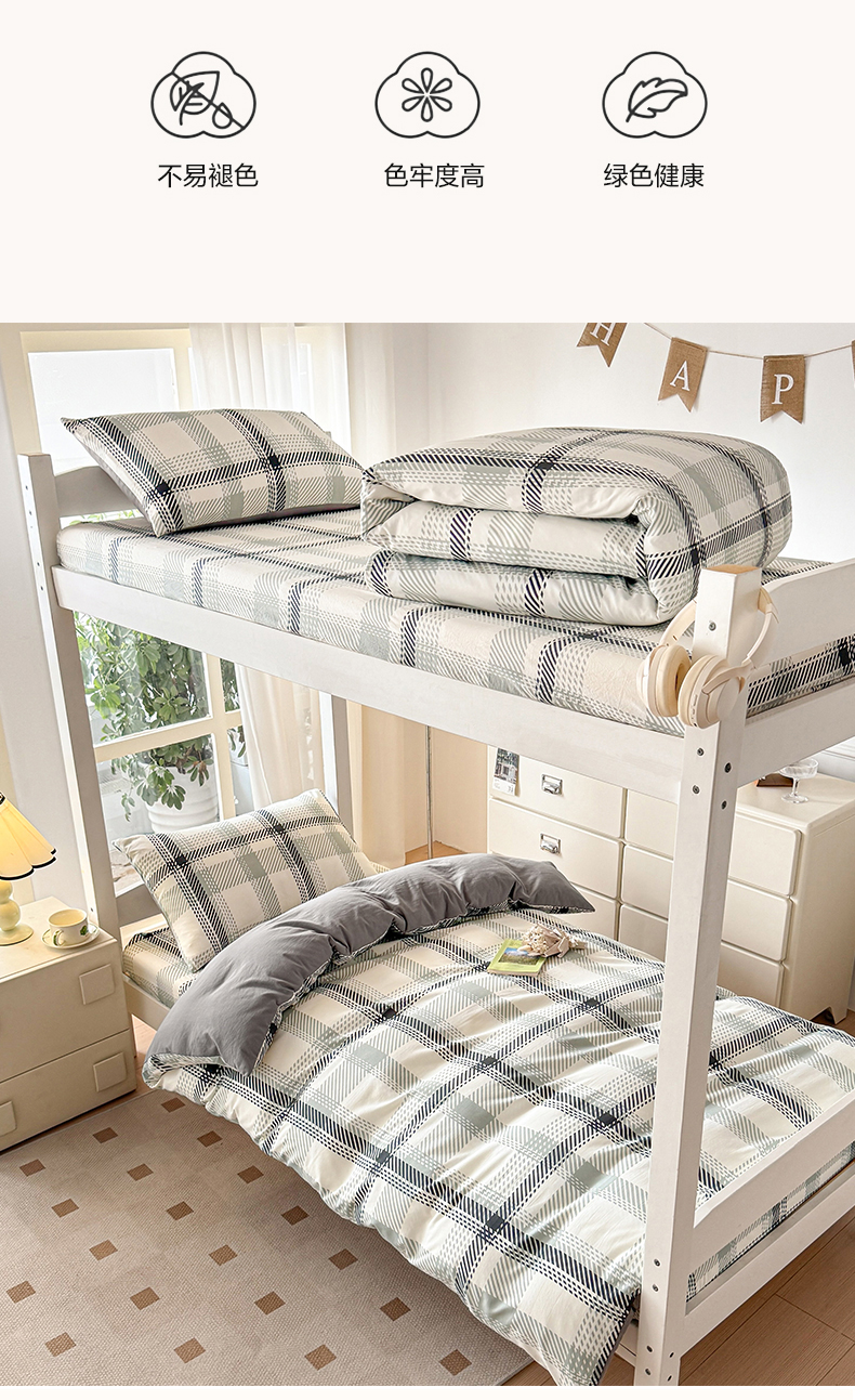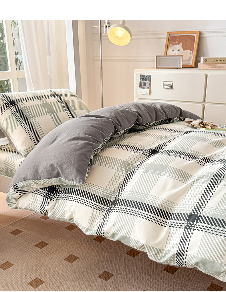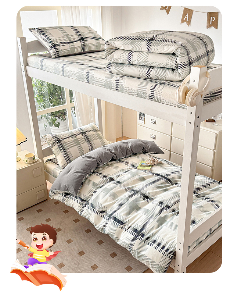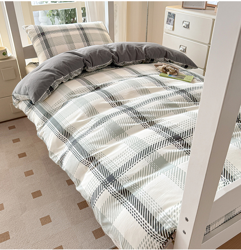 当前位置: 91家纺网 > 商品网购 > 床品套件 > 三件套 > 盛秋家纺 2025新款水洗棉格子学生小三套套件 格瑞斯+中灰
