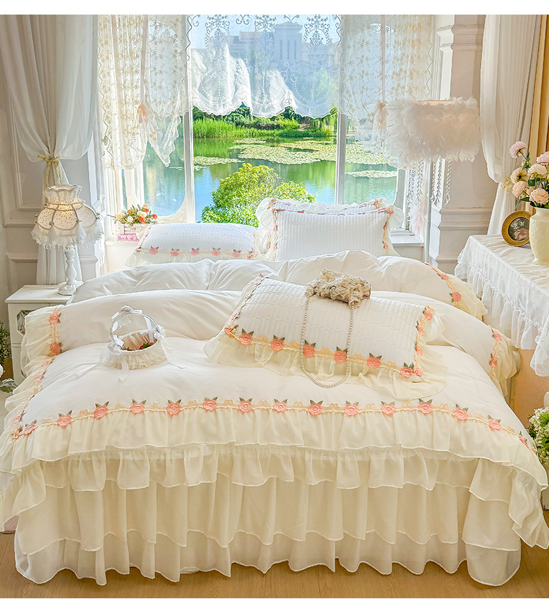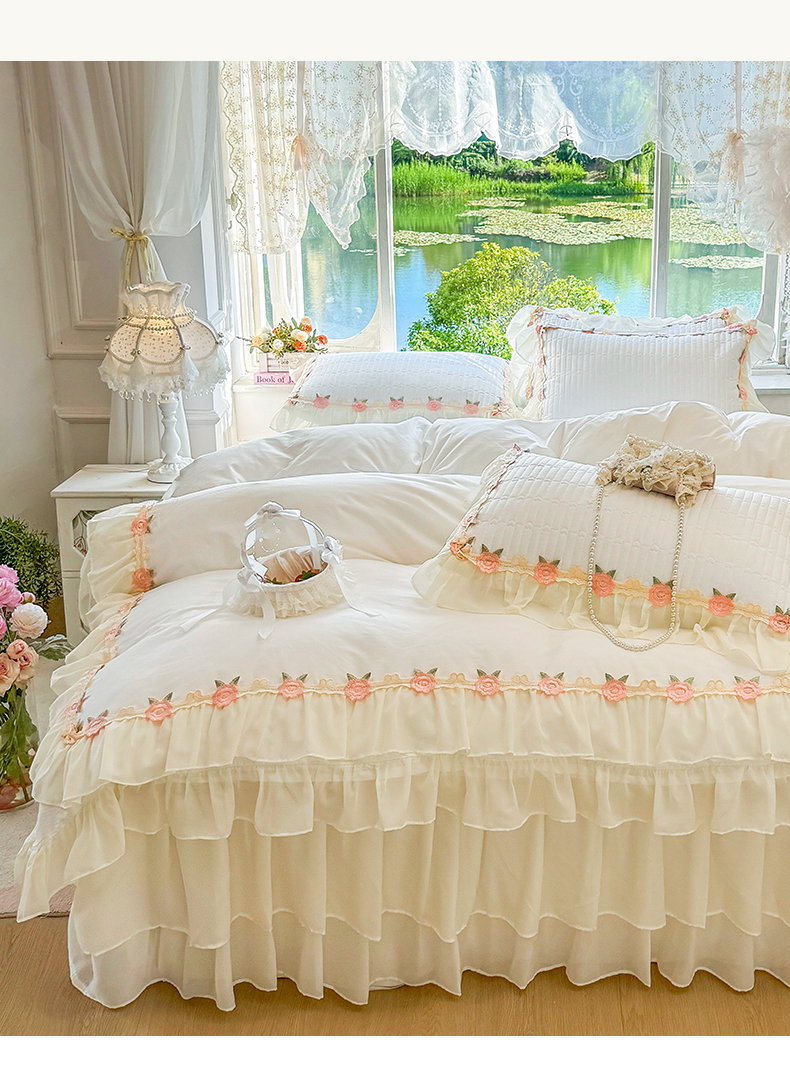 (总)虹星家纺 2025新款玫瑰花语全棉纯棉床裙款四件套