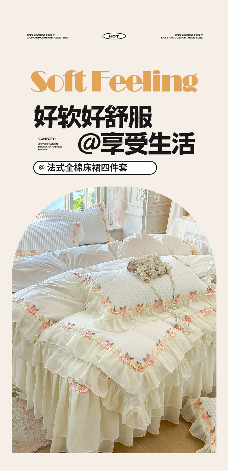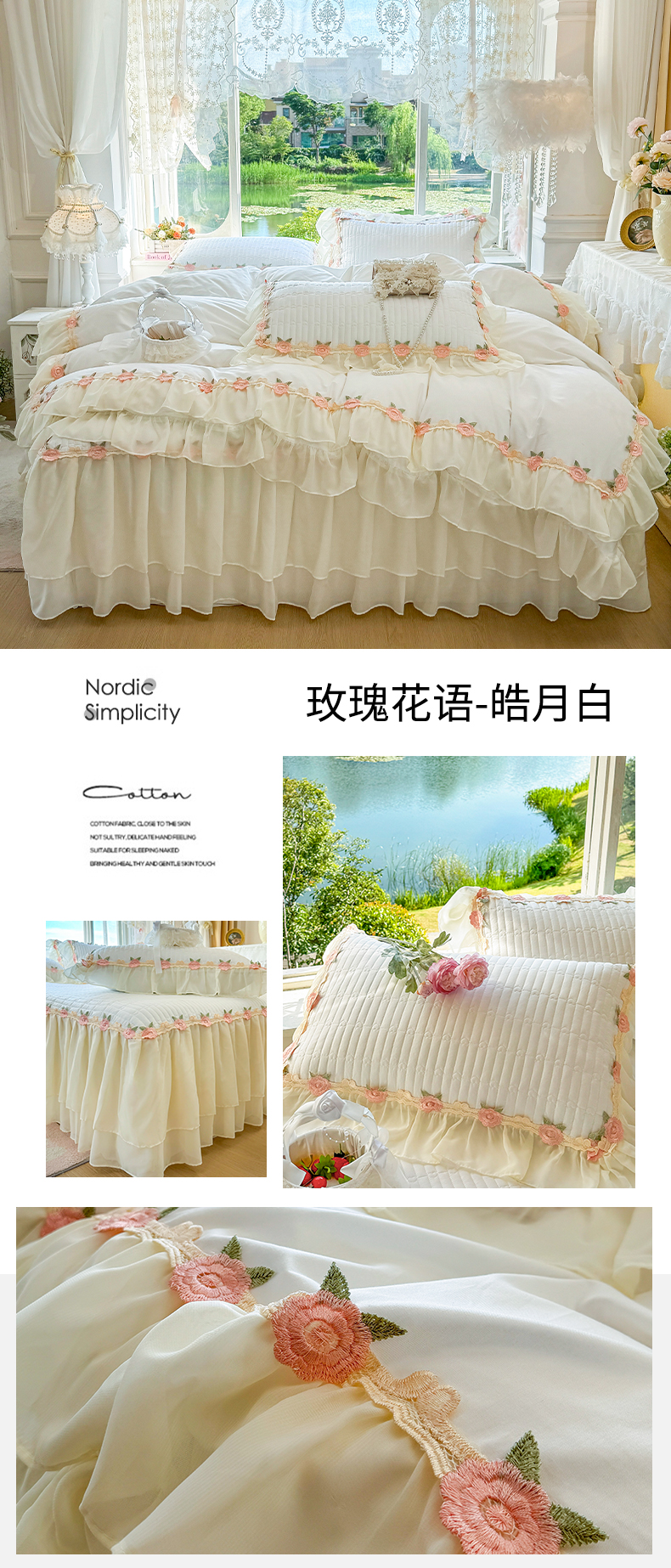 商品名称:(总)虹星家纺 2025新款玫瑰花语全棉纯棉床裙款四件套