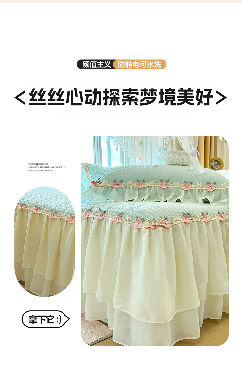 商品名称:(总)虹星家纺 2025新款玫瑰花语全棉纯棉床裙三件套单床裙床裙单件