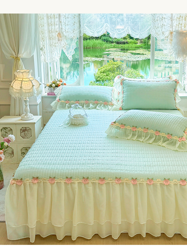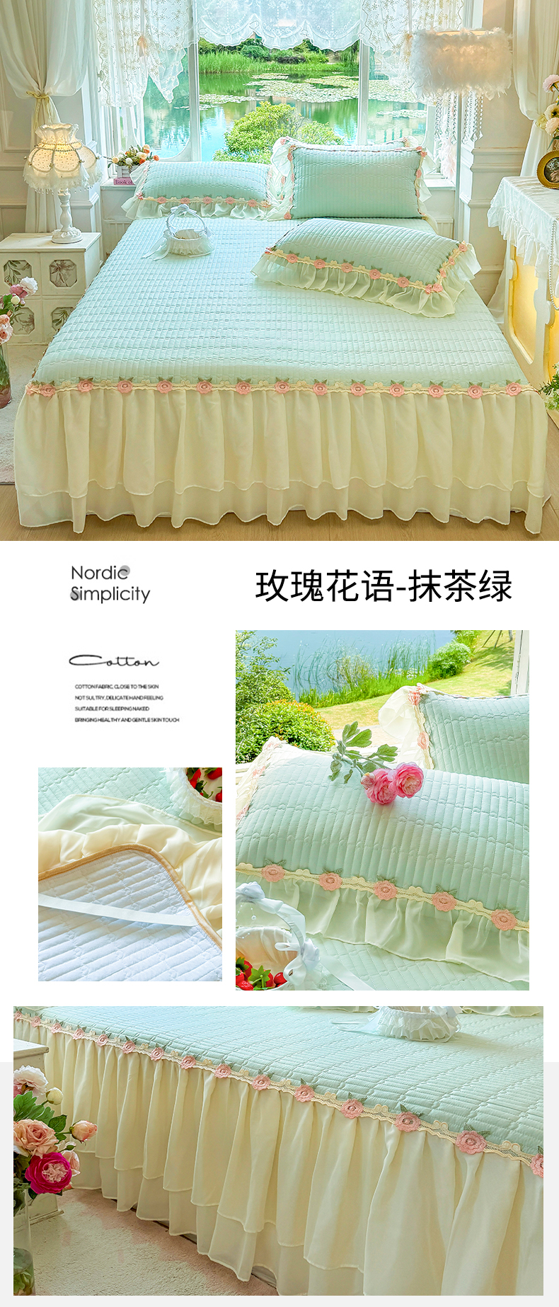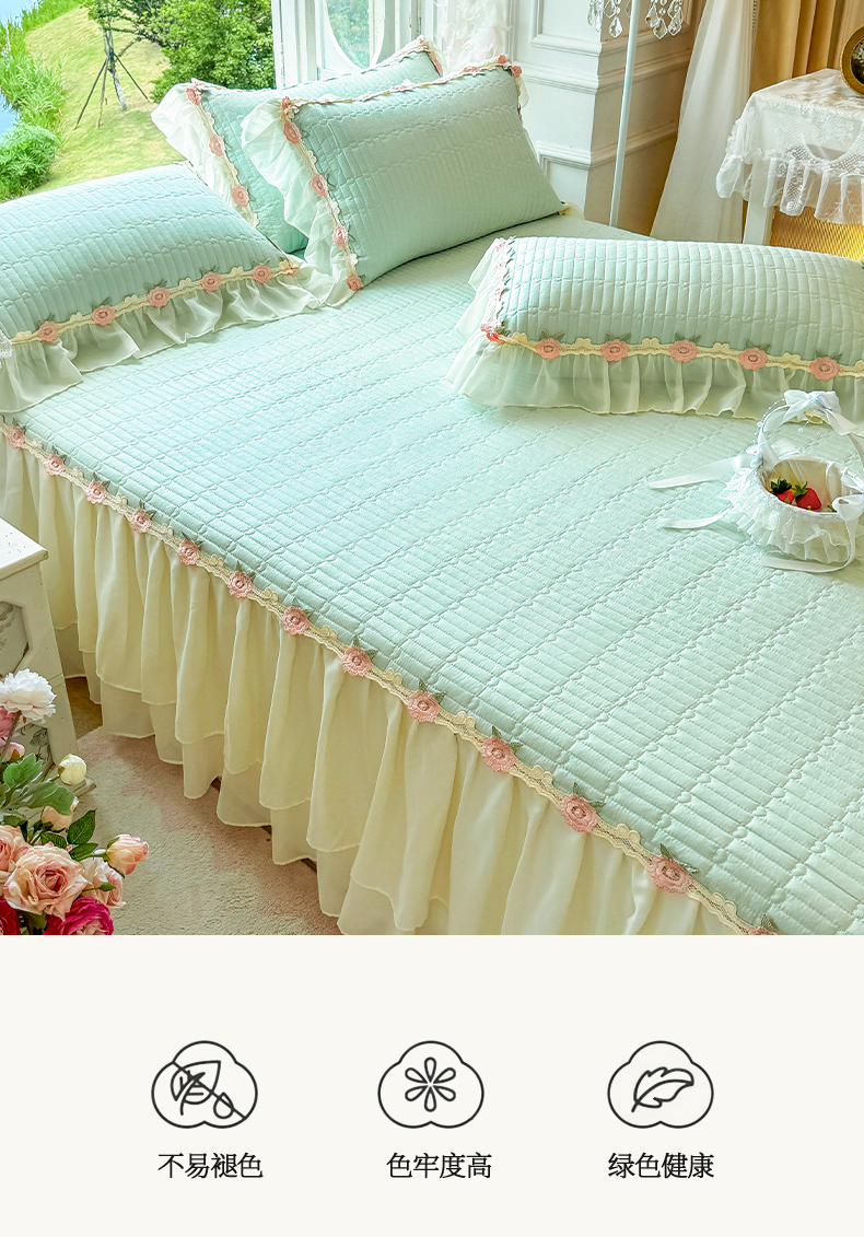 (总)虹星家纺 2025新款A类冰感凉豆豆床裙席三件套-素夏,素夏-抹茶绿,素夏-蜜桃粉,素夏-青果绿,素夏-天空蓝,素夏-月光灰