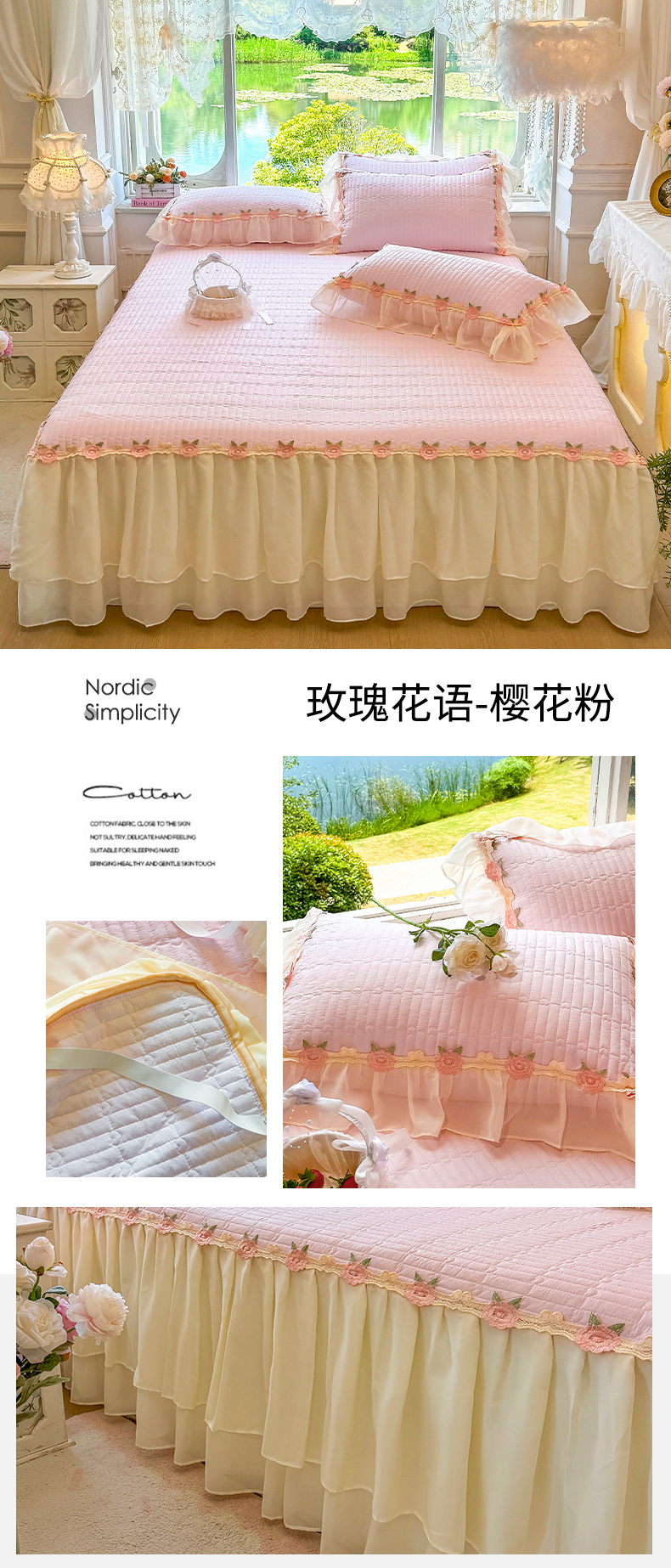 (总)虹星家纺 2025新款玫瑰花语全棉纯棉床裙三件套单床裙床裙单件