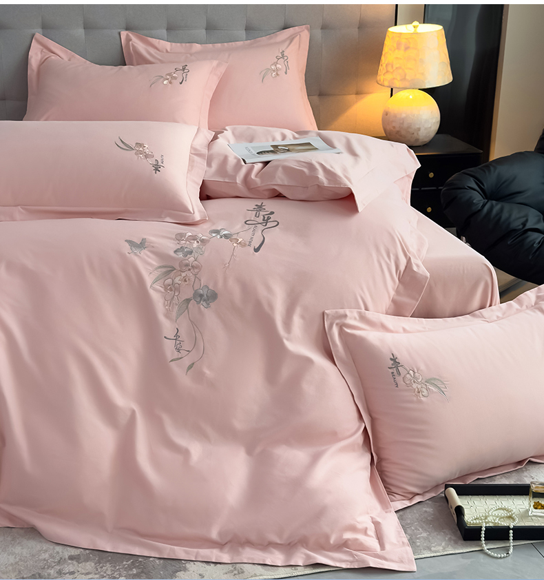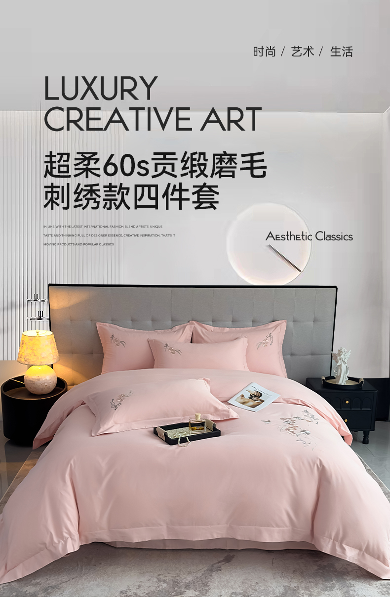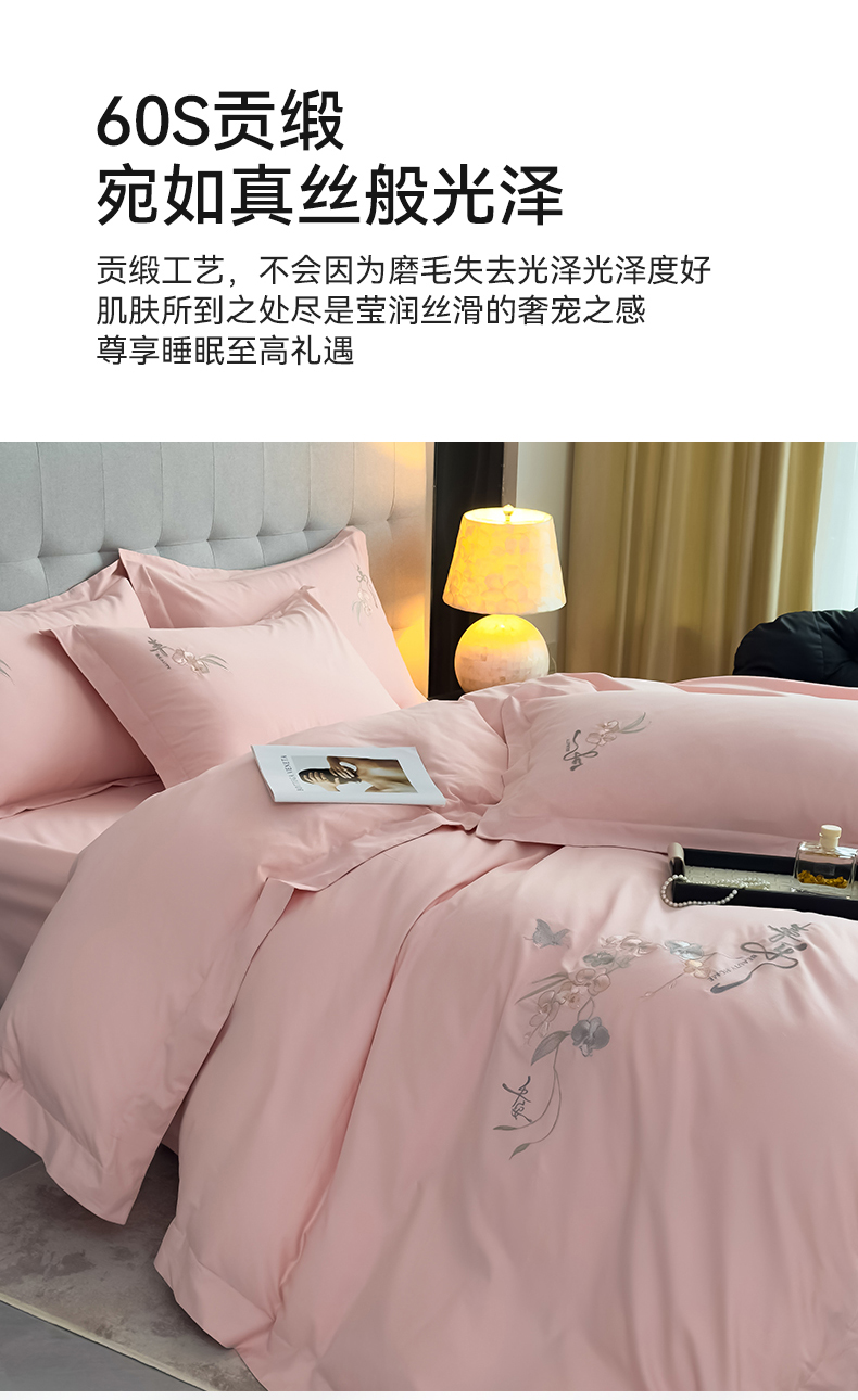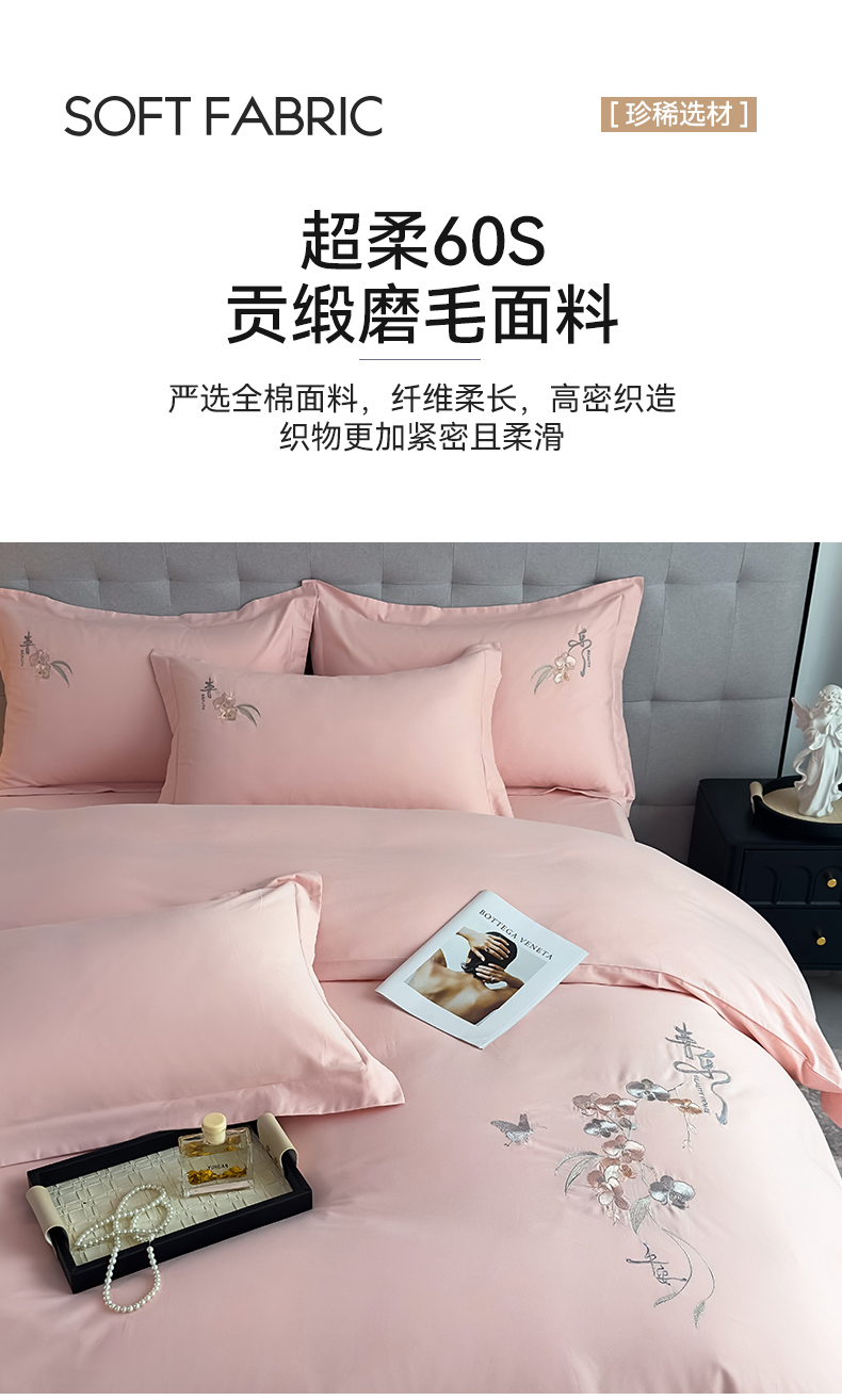 当前位置: 91家纺网 > 商品网购 > 床品套件 > 四件套 > 普通磨毛四件套 > 曼秀琳家纺 2025秋冬新款超柔60s贡缎磨毛刺绣款套件四件套 平安喜乐-香妃粉