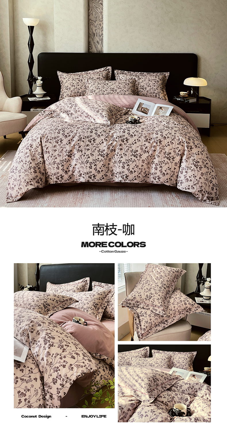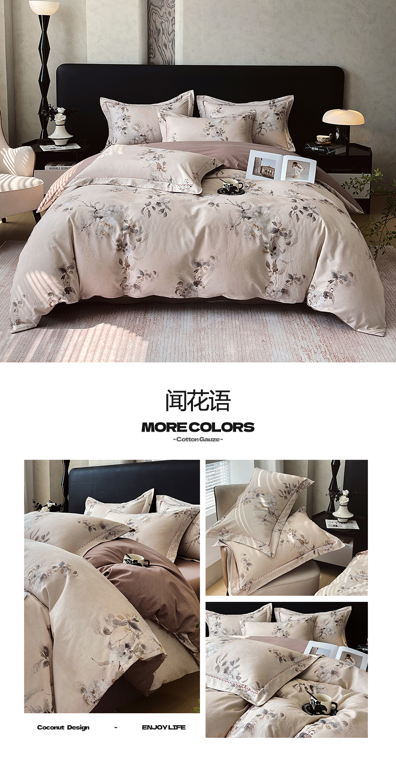 (总)帅露家纺 2025新款A类棉麻活性印染四件套系列,花间意境-红,花间意境-灰,花香满园-红,素锦-咖,香叶时代,映霜-灰,映霜-绿