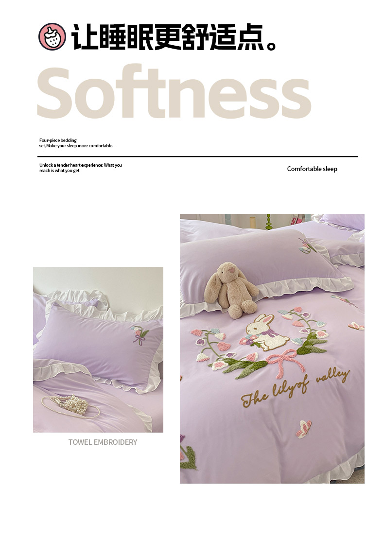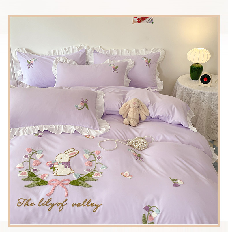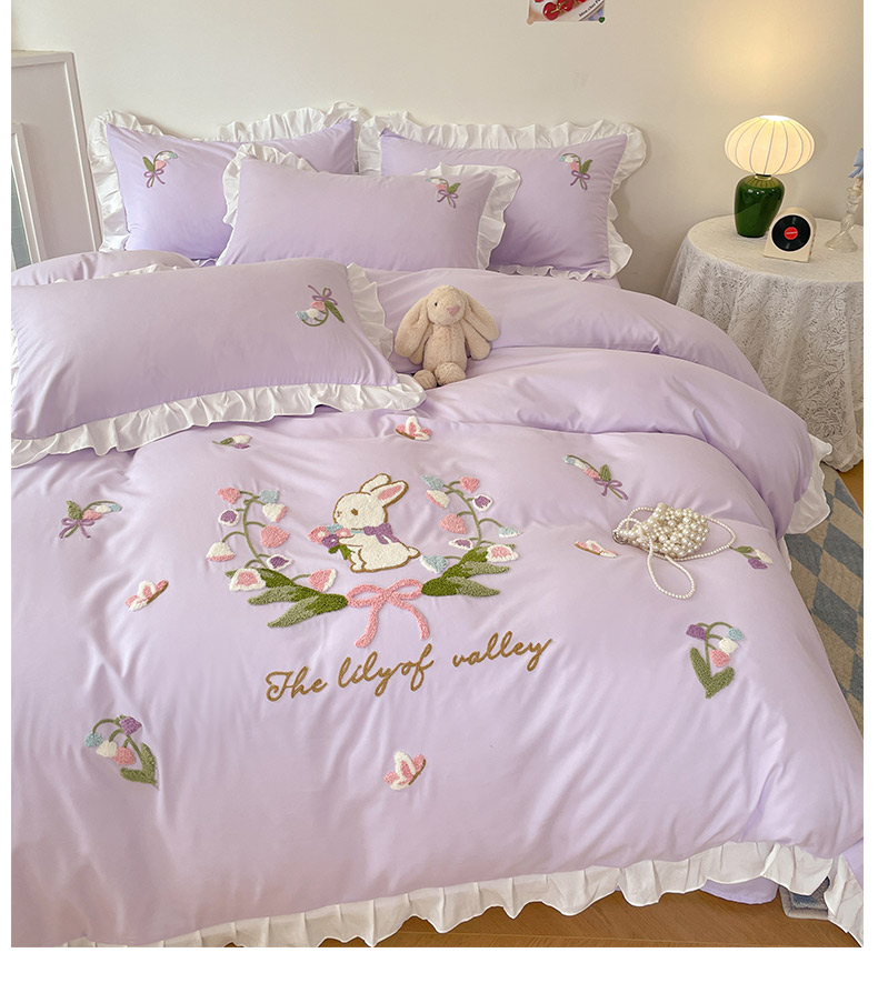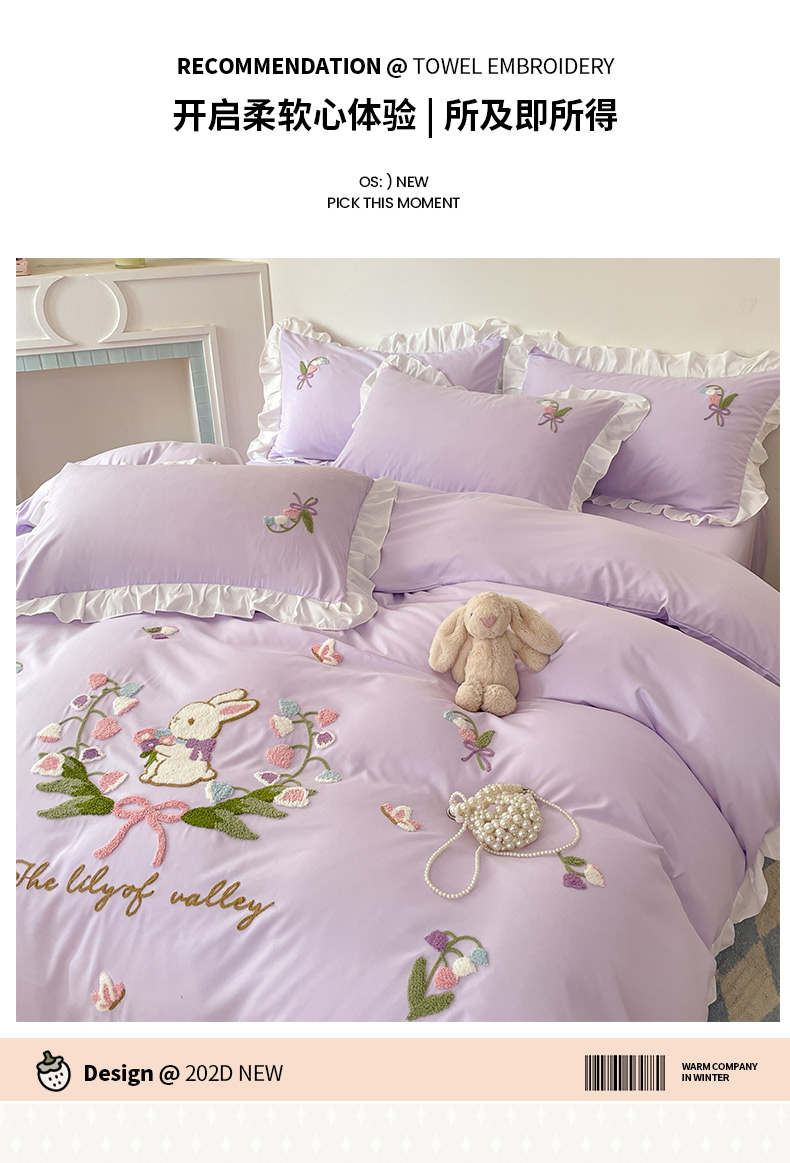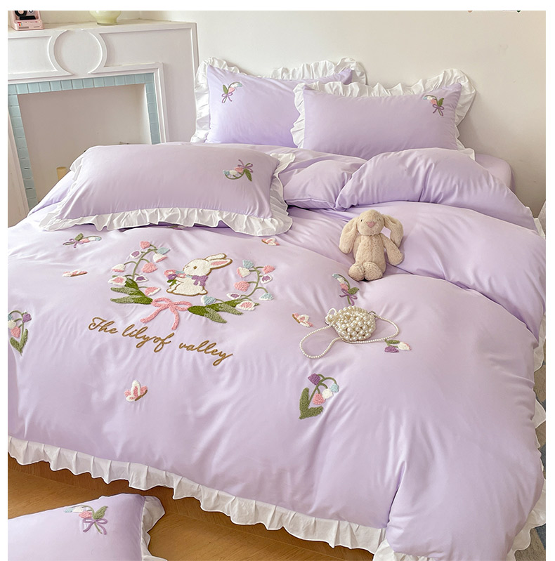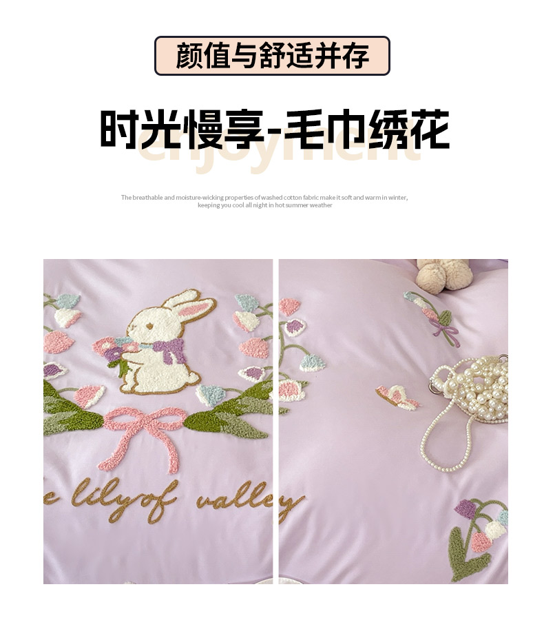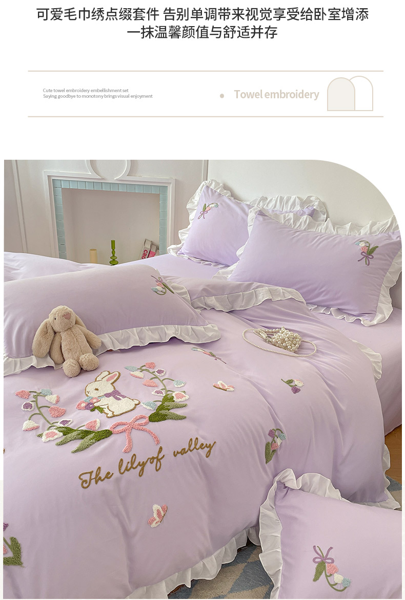 当前位置: 91家纺网 > 商品网购 > 床品套件 > 四件套 > 水洗棉四件套 > 易禾家纺 2025新款韩版小清新毛巾绣水洗棉四件套学生宿舍三件套铃兰小兔系列(专板花型) 铃兰小兔-紫