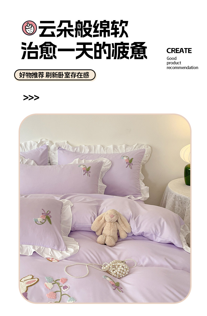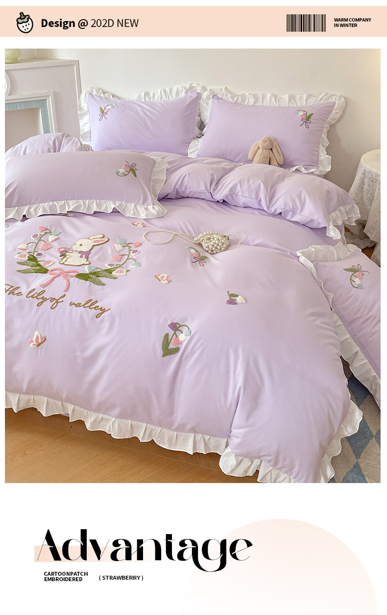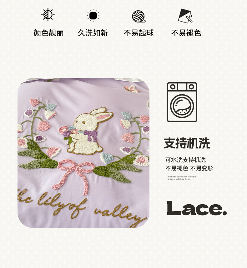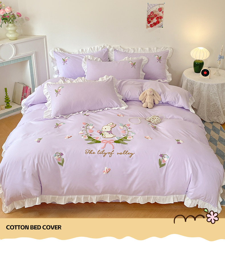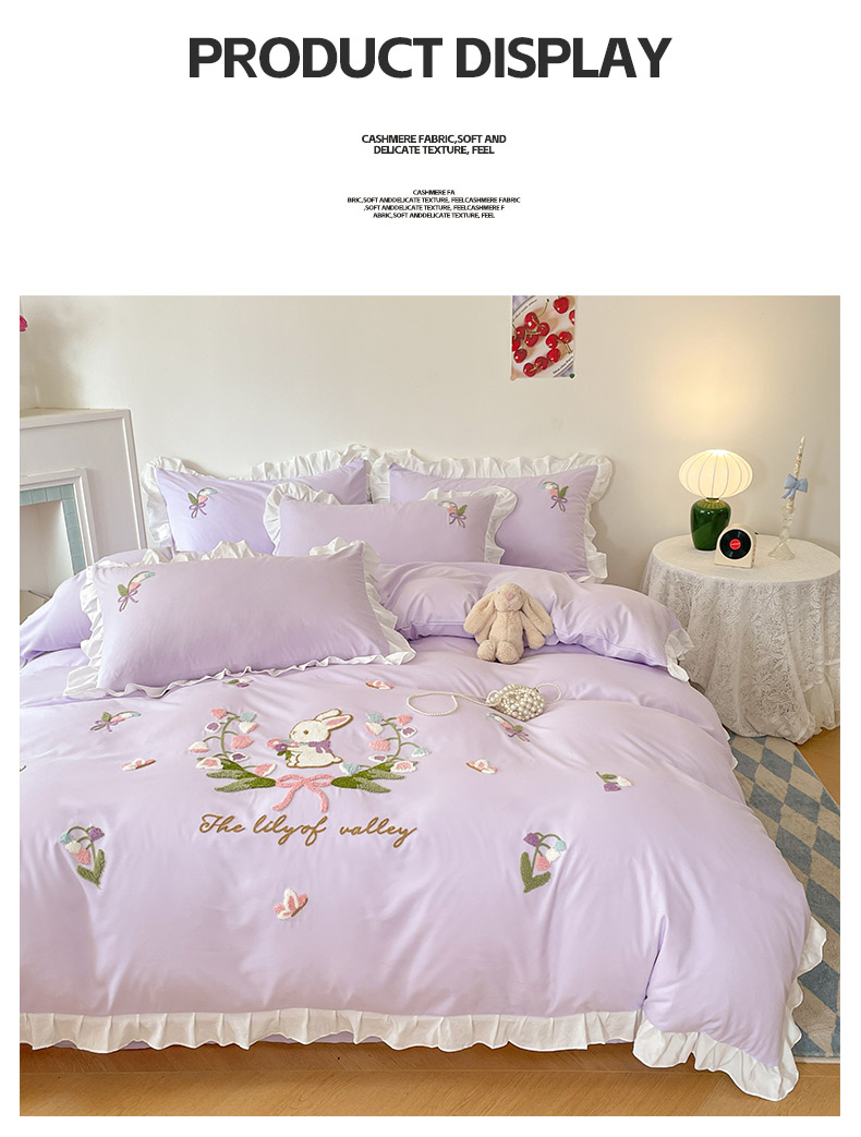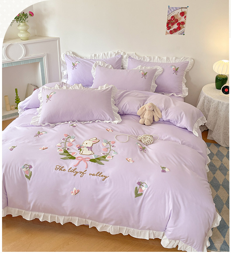 当前位置: 91家纺网 > 商品网购 > 床品套件 > 四件套 > 水洗棉四件套 > 易禾家纺 2025新款韩版小清新毛巾绣水洗棉四件套学生宿舍三件套铃兰小兔系列(专板花型) 铃兰小兔-紫