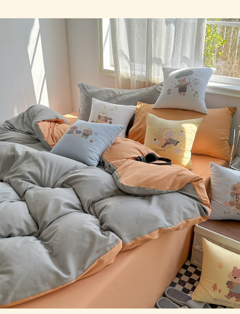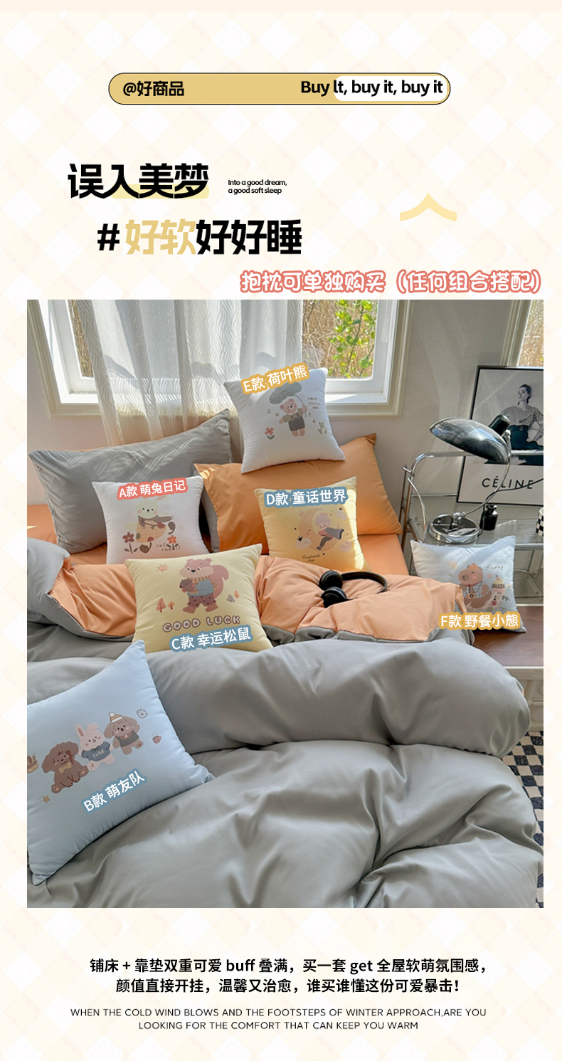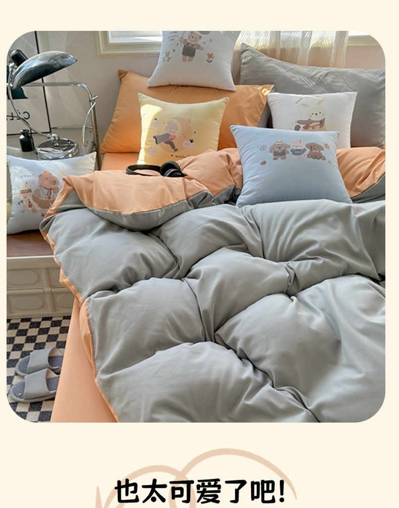 商品名称:(总)2025新款纯色双拼水洗棉三四件套搭配抱枕组合ins风双拼色软糯亲肤床单被套抱枕床品套件